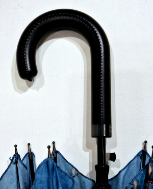 Parapluie long manuel bleu tissu satiné avec un motif sur les voiliers Piganiol, léger et résistant
