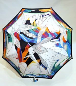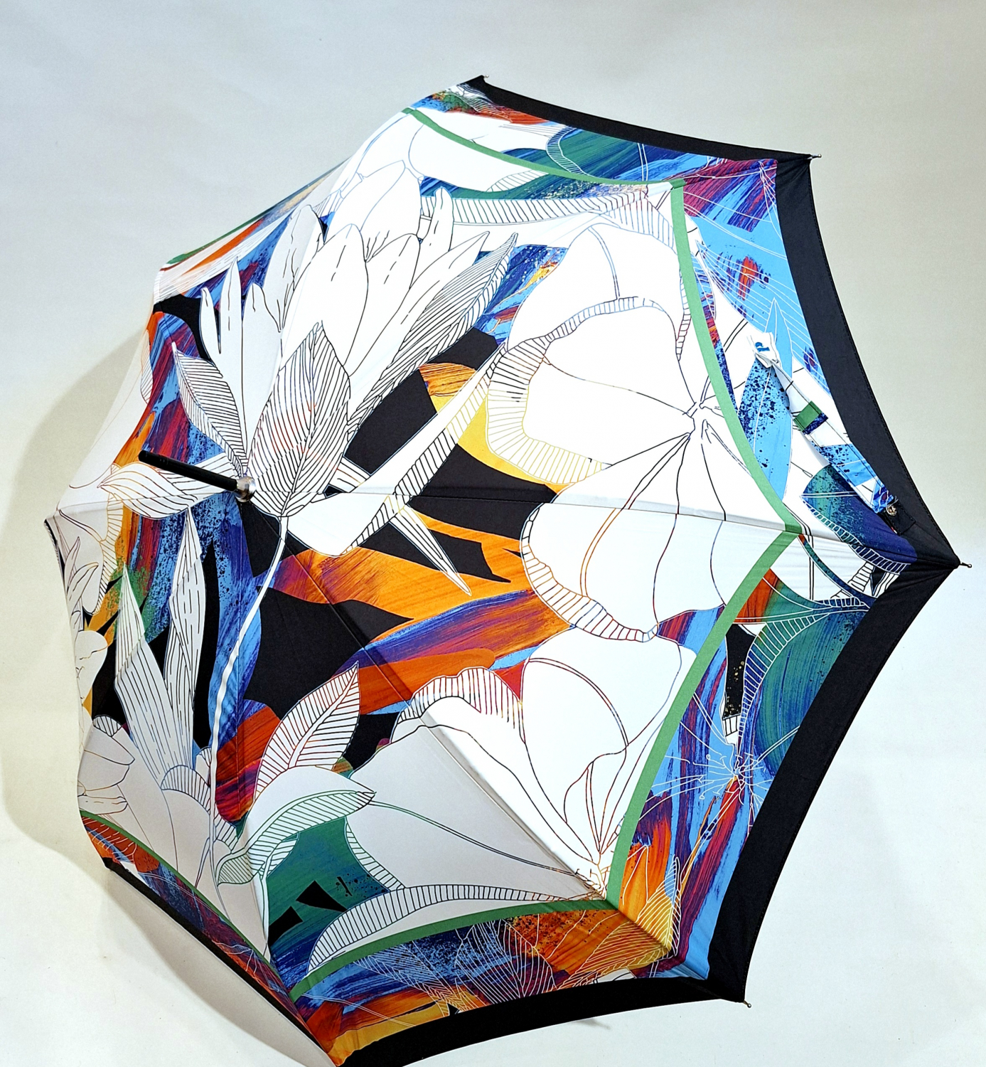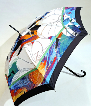 Parapluie grand manuel blanc & coloré mprimé FLEURS D'ACIER Aurillac - léger & résistant