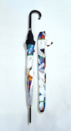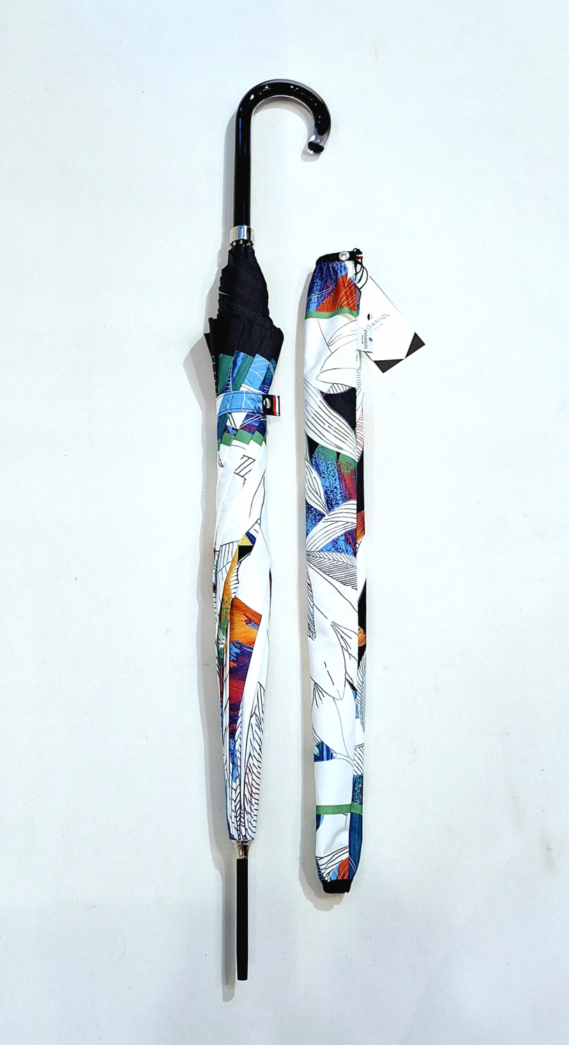 Parapluie long automatique blanc imprime tropicale P.Cardin - Grand & anti vent