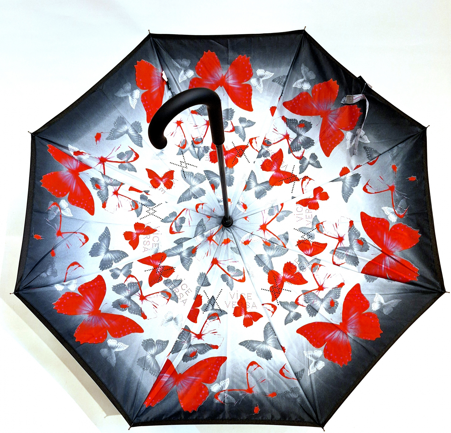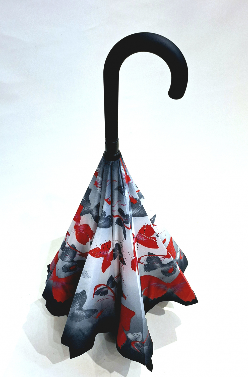 Parapluie inversé doublé gris dégradé papillons rouge anti uv à 100% Vice versa - original & anti vent