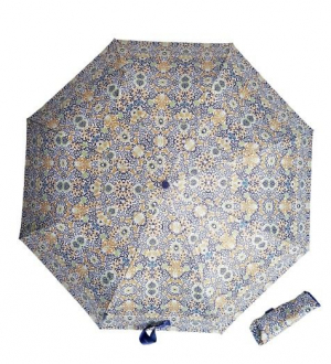 Parapluie mini pliant manuel blanc imprimé feuillage orange/bleu petite poignée courbe - léger 220g & grand