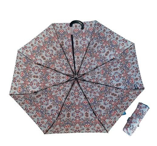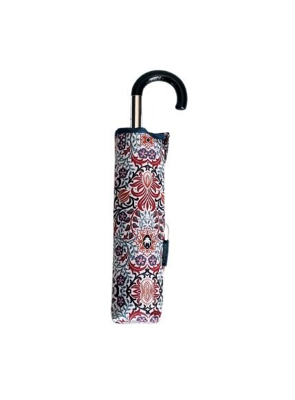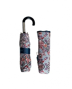 Parapluie mini pliant manuel blanc imprimé feuillage vert/bleu petite poignée courbe - léger 220g & large