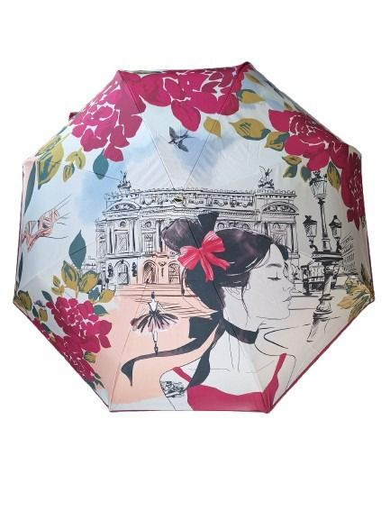 Parapluie pliant français Piganiol mini automatique blanc / rose imprimé Paris Opéra BALLERINE - Léger & résistant
