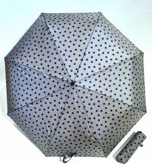 Parapluie pliant automatique taupe imprimé pois bleu Piganiol - Solide & pas cher