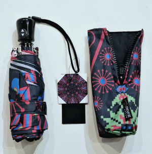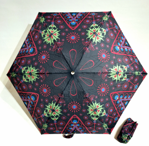 Parapluie mini de poche pliant plat noir fantaisie multicolore - léger 200g & solide