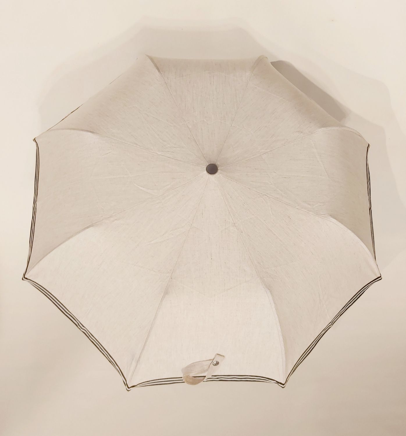Parapluie micro plat de poche rayé kaki et blanc Charles - Léger 220g & solide 7 br TOP