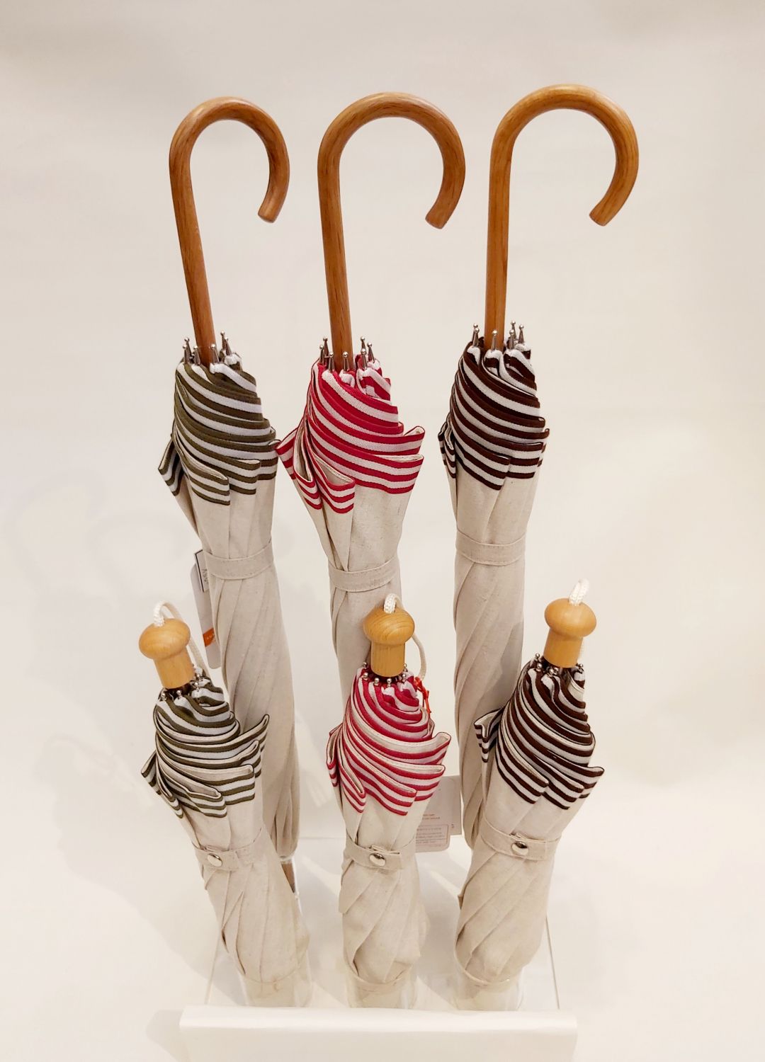 • Parapluie micro plat de poche rayé kaki et blanc Charles - Léger 220g & solide 7 br TOP