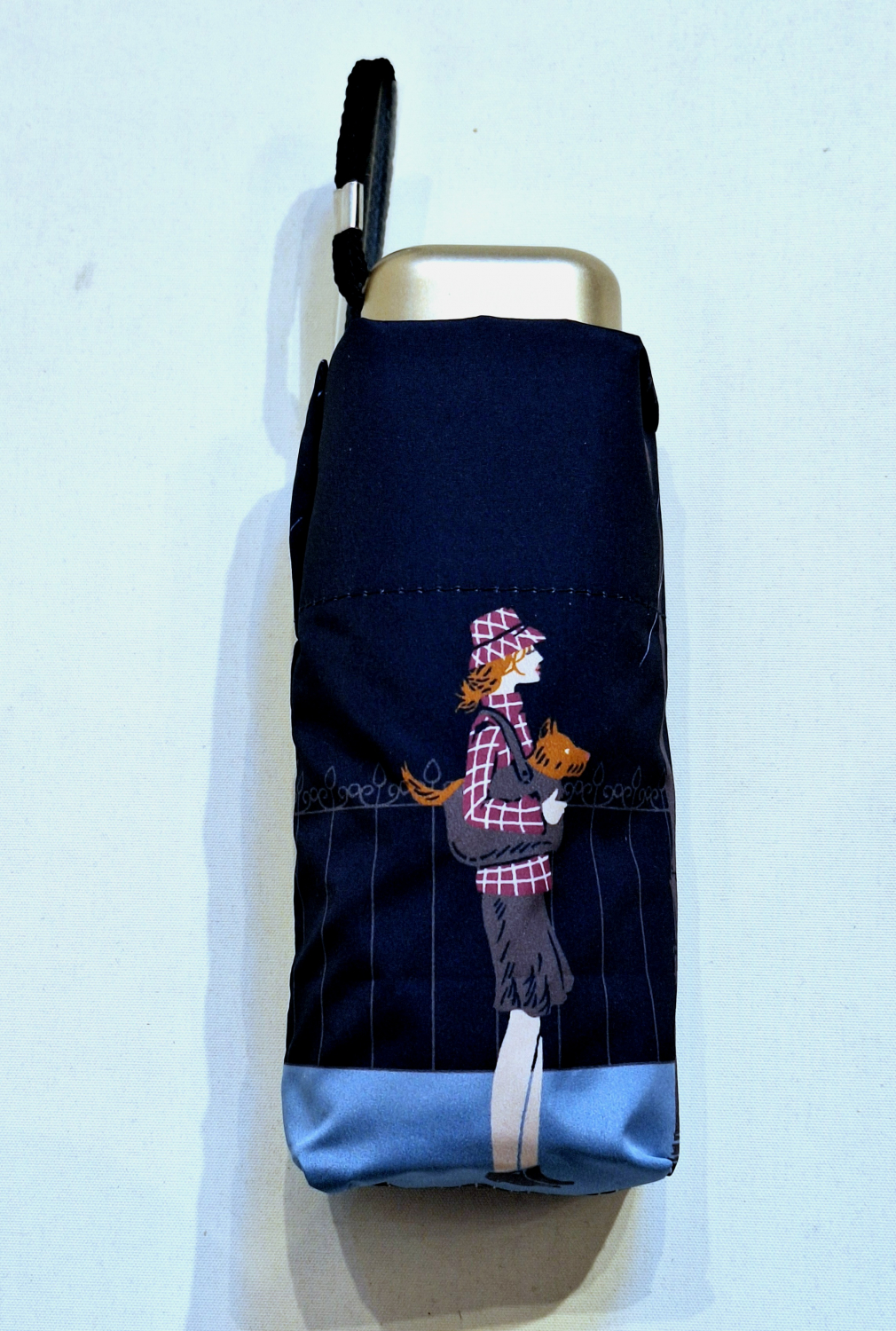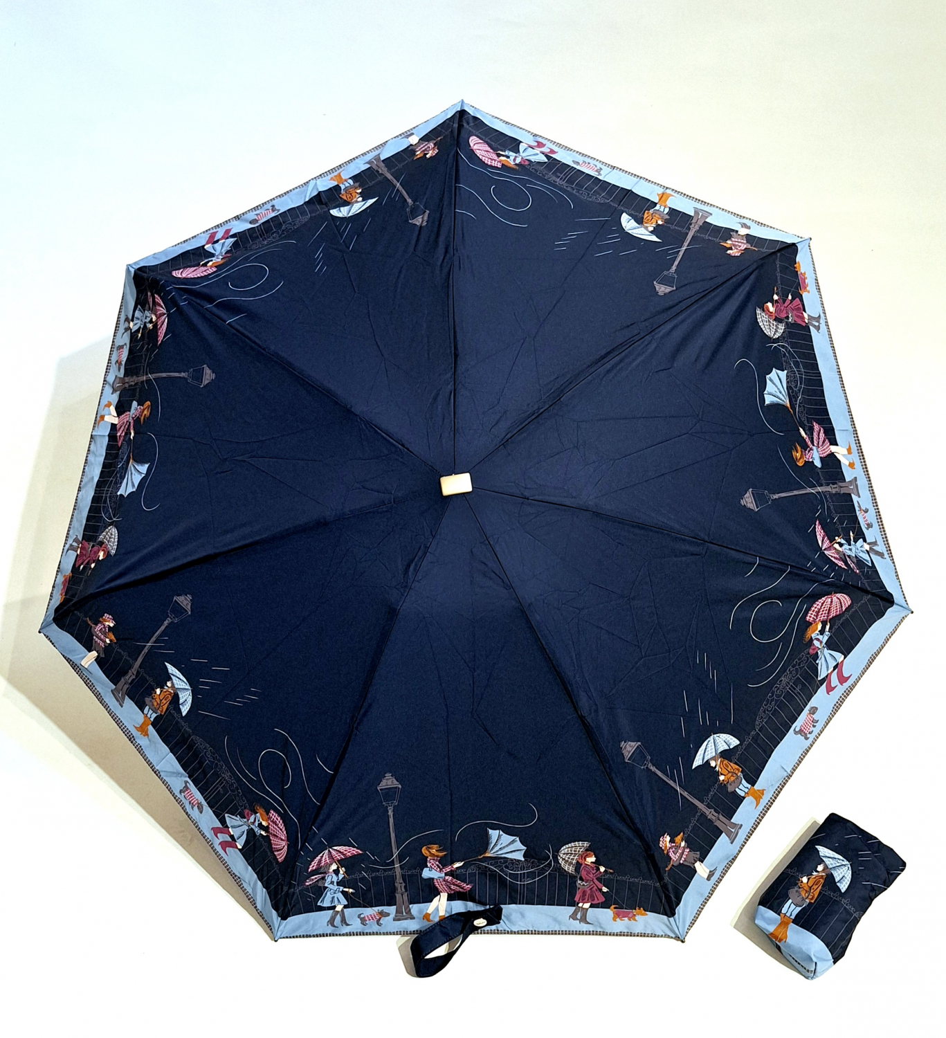 Parapluie de poche micro plat bleu marine scène de vie sous la tempête Vaux français - Petit 16cm - Léger manuel & 7 brches résistant - Top qualité