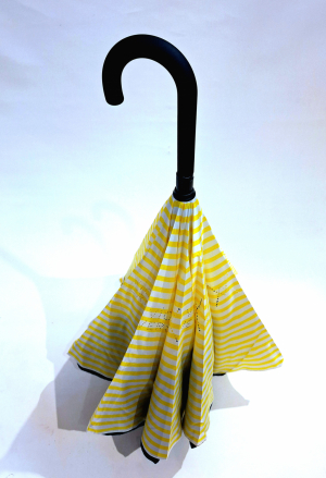 Parapluie inversé doublé bleu imprimé marinière jaune & blanc anti uv à 100% Vice versa - original & anti vent