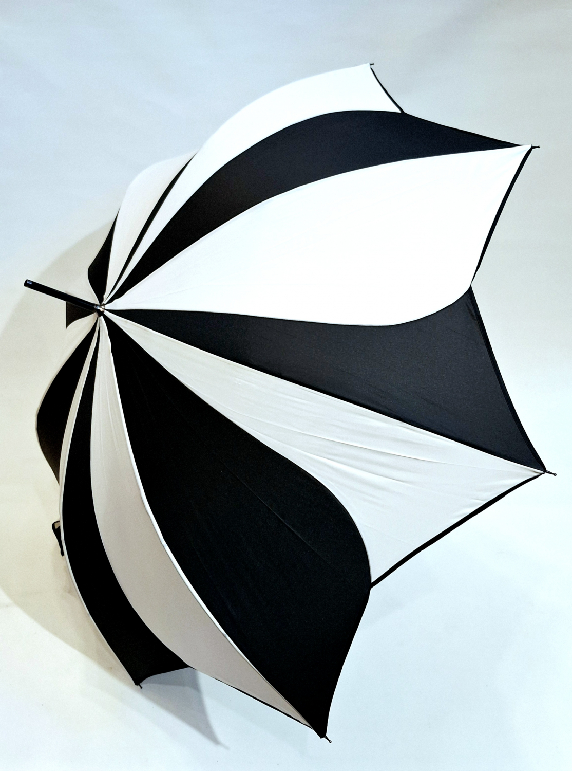 Parapluie long automatique en forme de fleur bicolore noir & blanc P.Cardin - Résistant & Léger