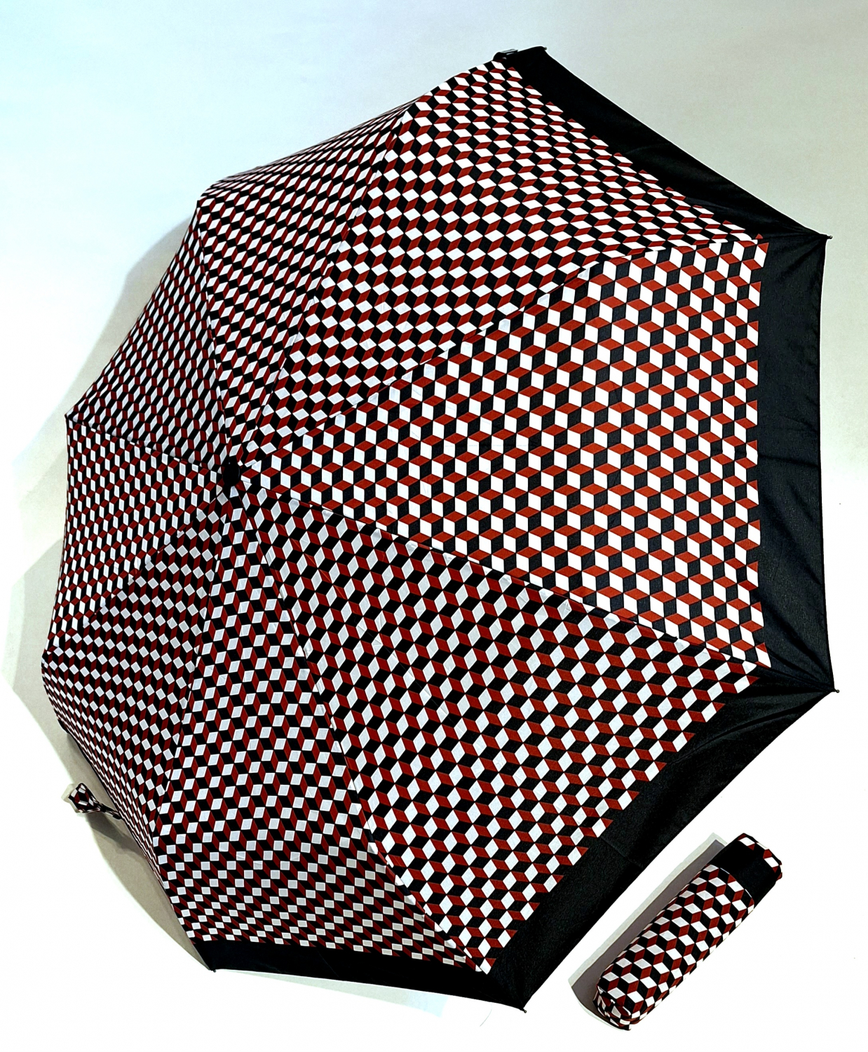 parapluie mini pliant open-close gris anthracite imprimé losanges 10 baleines P.Cardin - grand & résistant