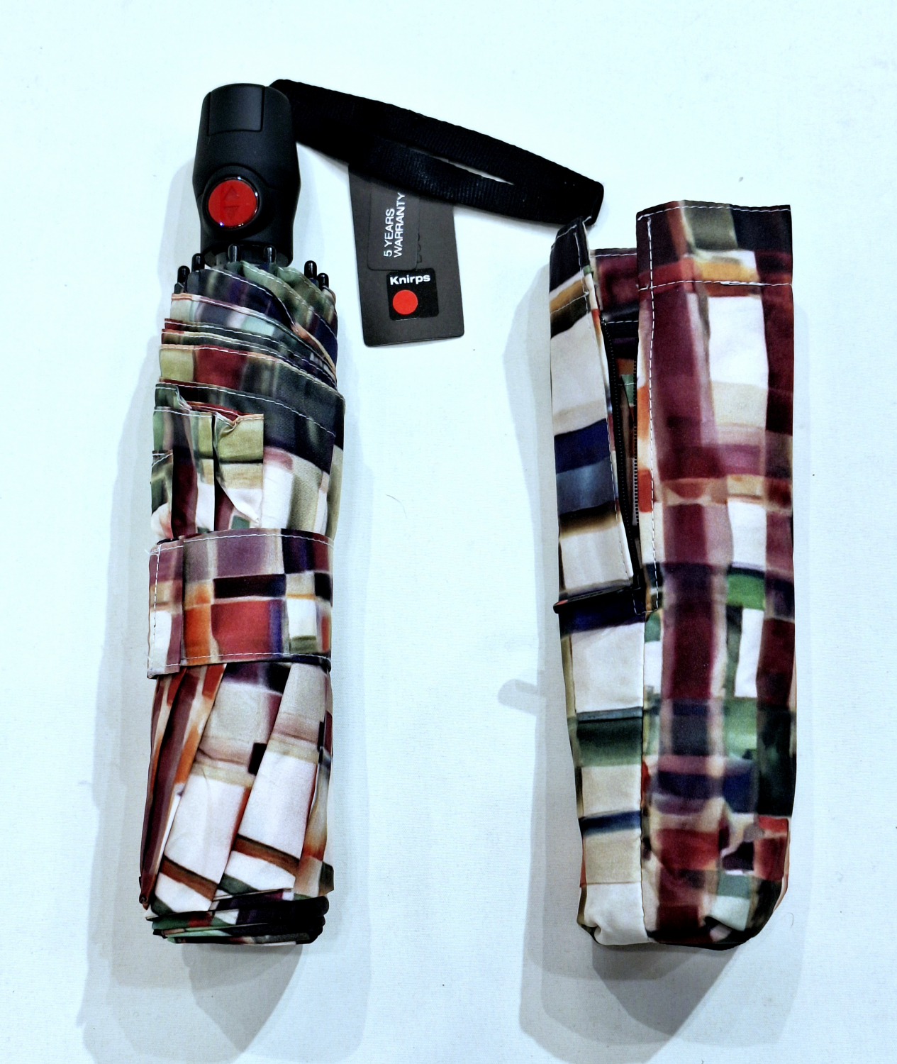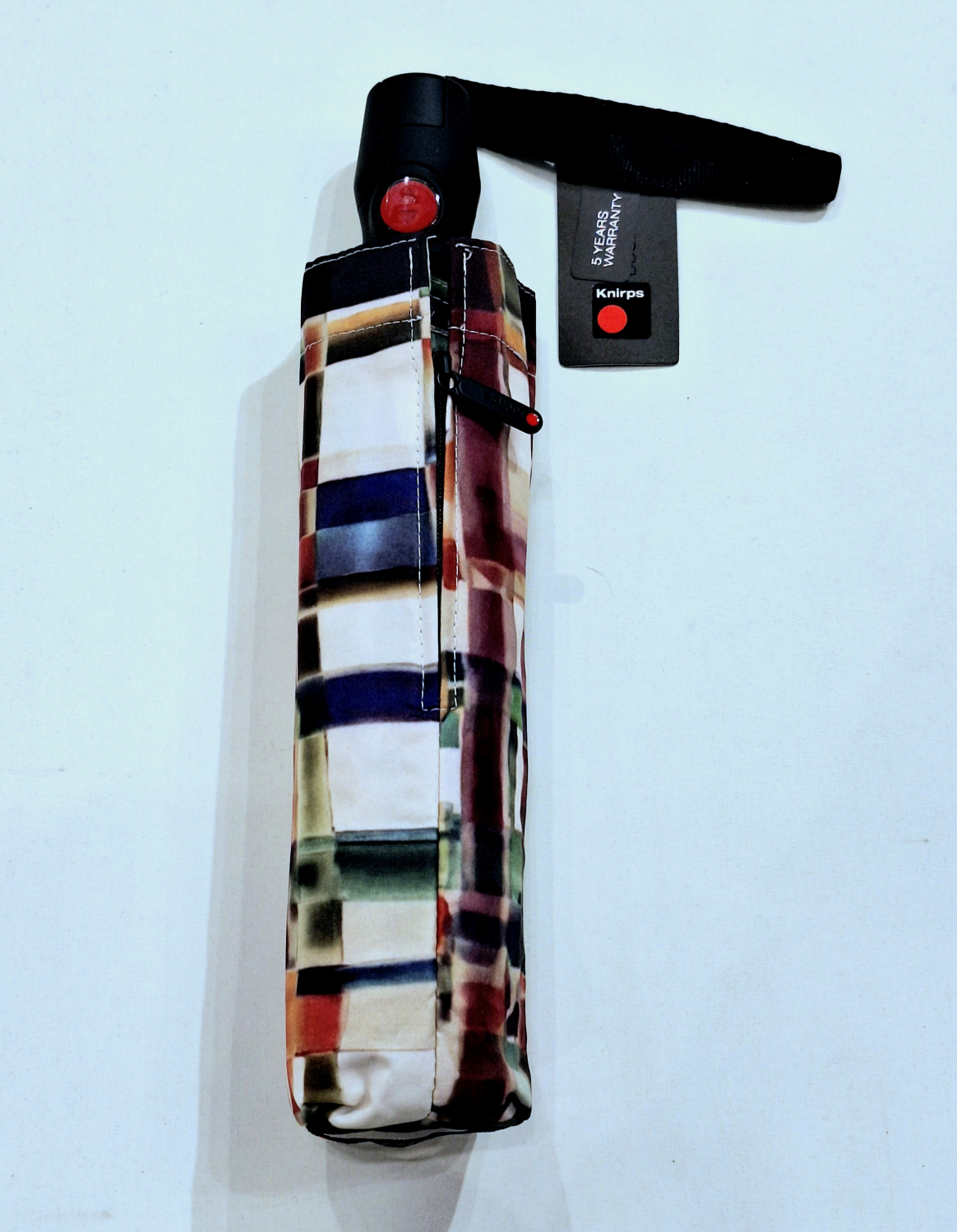 Mini parapluie pliant T200 Knirps automatique ouvré fermé écru imprimé carreaux coloré - Garantie 5ans - Léger & solide