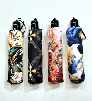 • Parapluie Anatole mini plat de poche imprimé poignée bois - Leopard & Noir - JULIETTE - Léger 220g & solide 7 br TOP