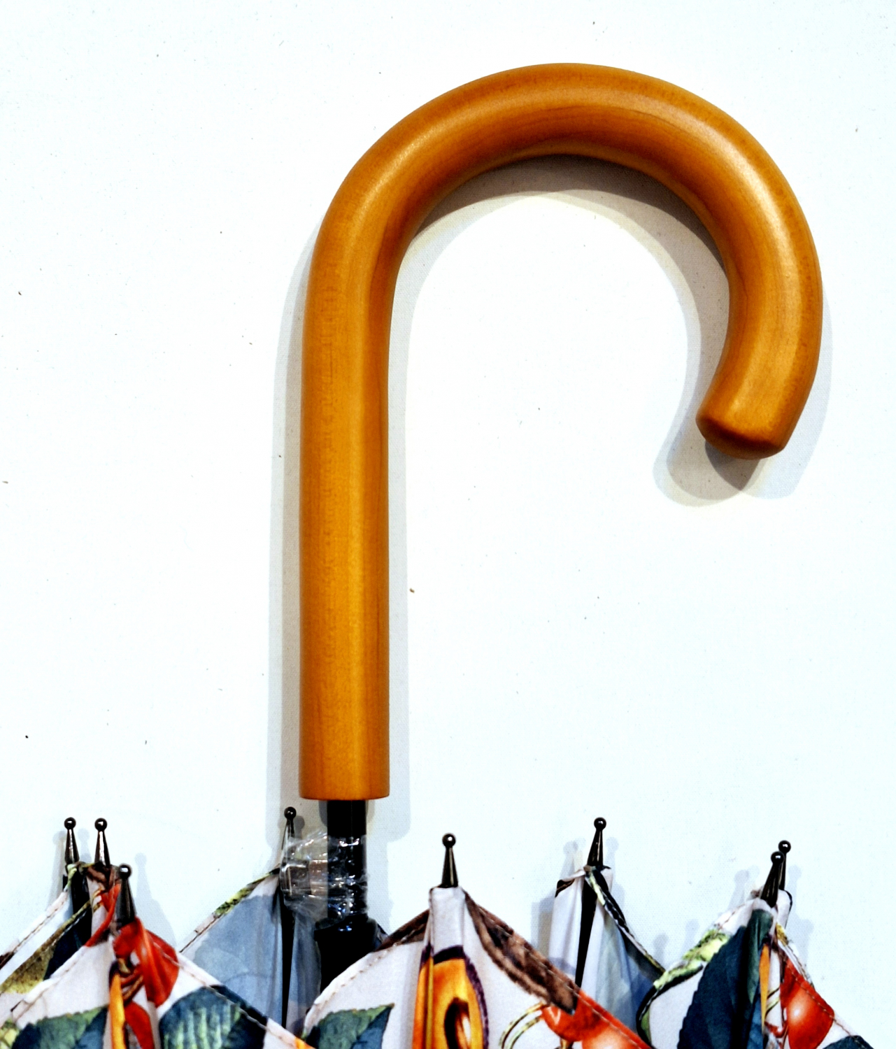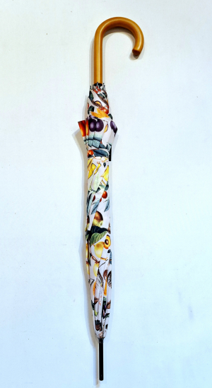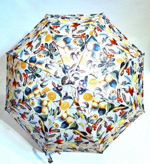 Parapluie grand automatique ivoire imprimé fruits Neyrat poignée bois - léger & résistant