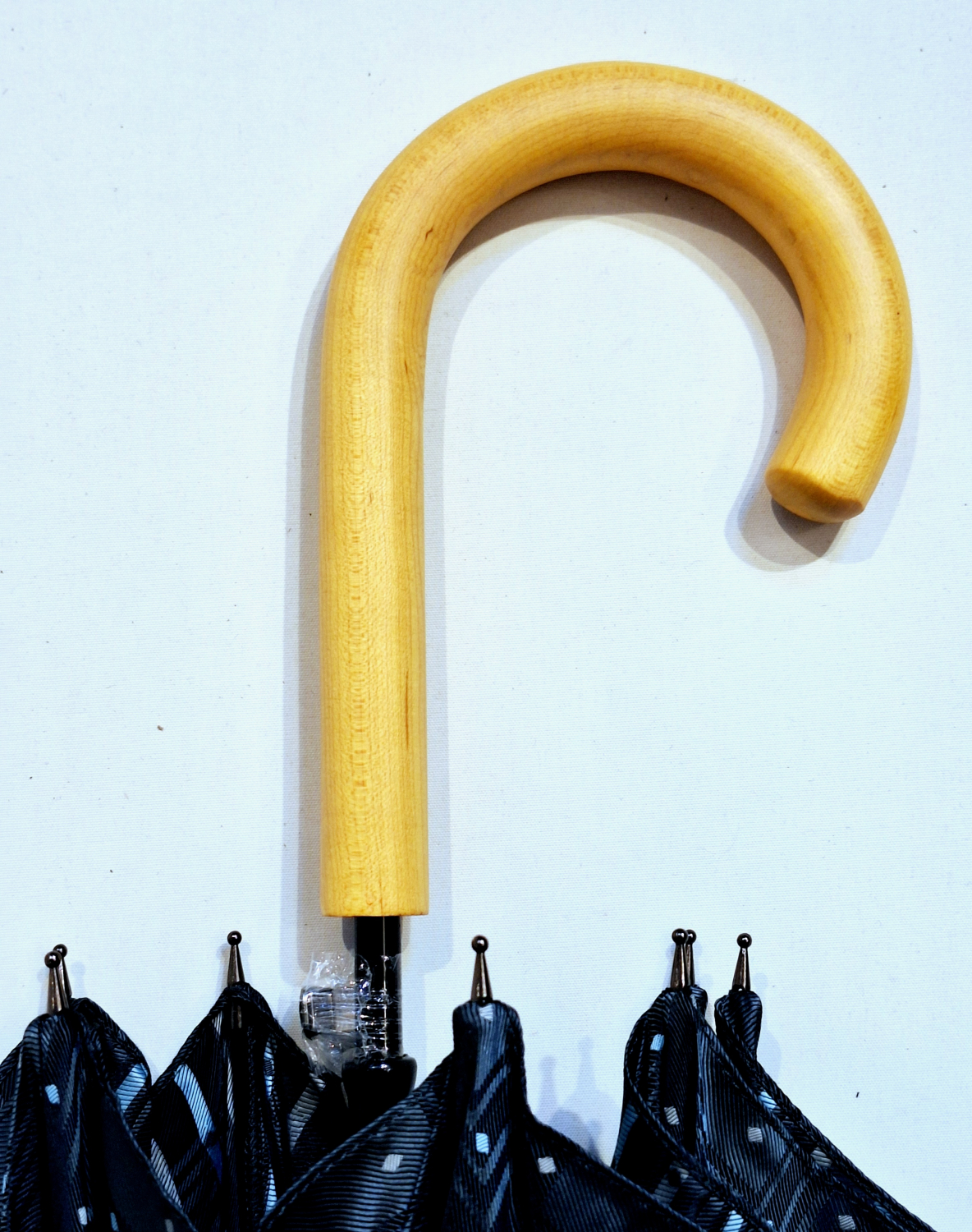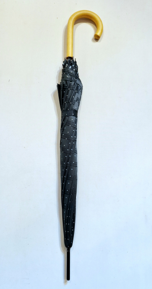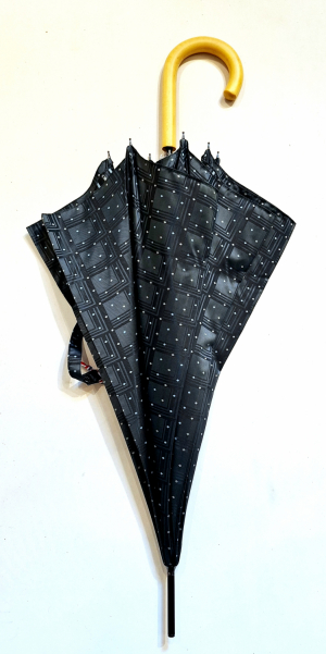 Parapluie Anatole mini plat de poche imprimé écossais oversize pg bois - noir/blanc & ocre - GORDON - Léger 220g & solide 7 br TOP