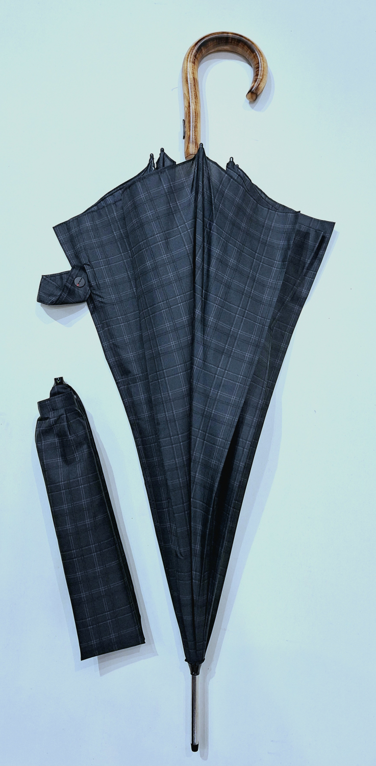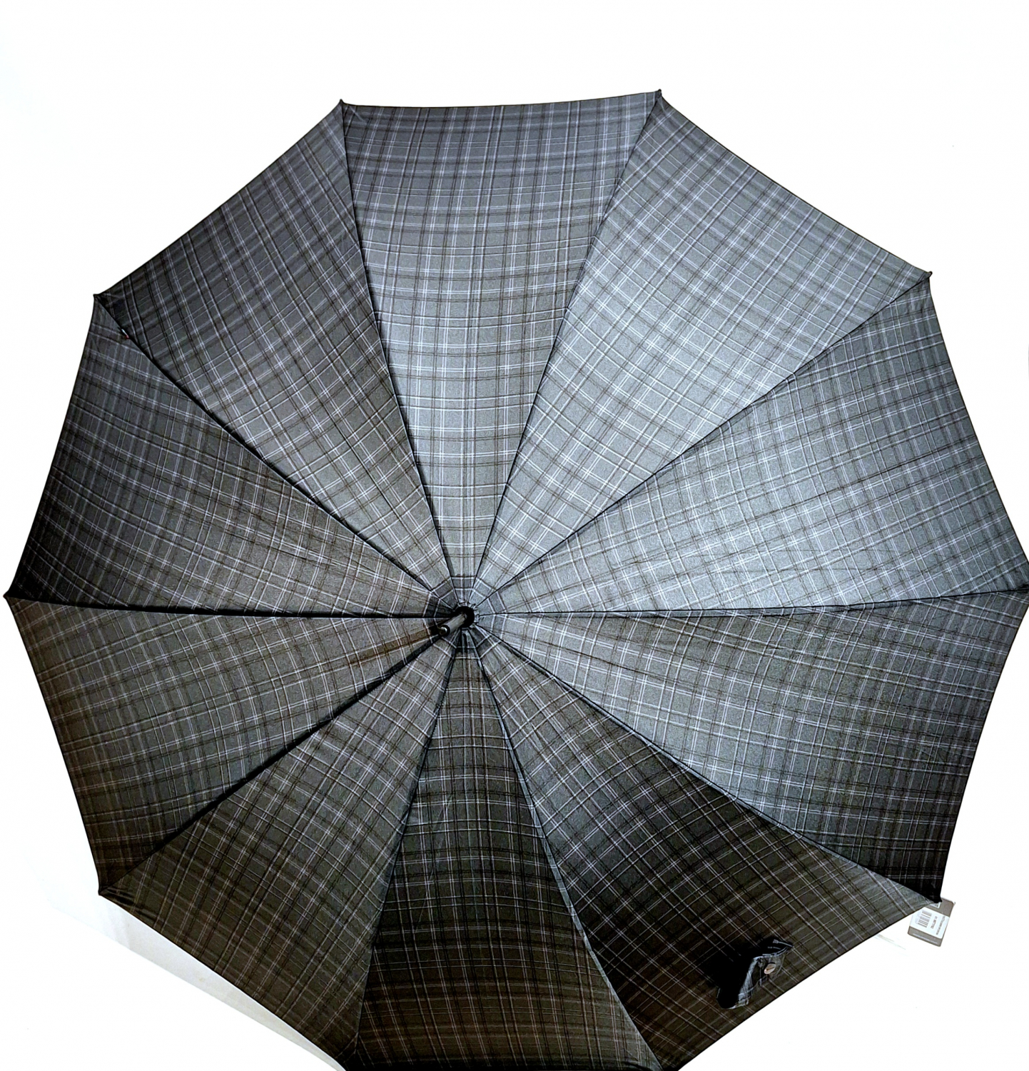 Parapluie homme long auto noir imprimé écossais pg courbe bois Figaro - Grand 10 branches &résistant
