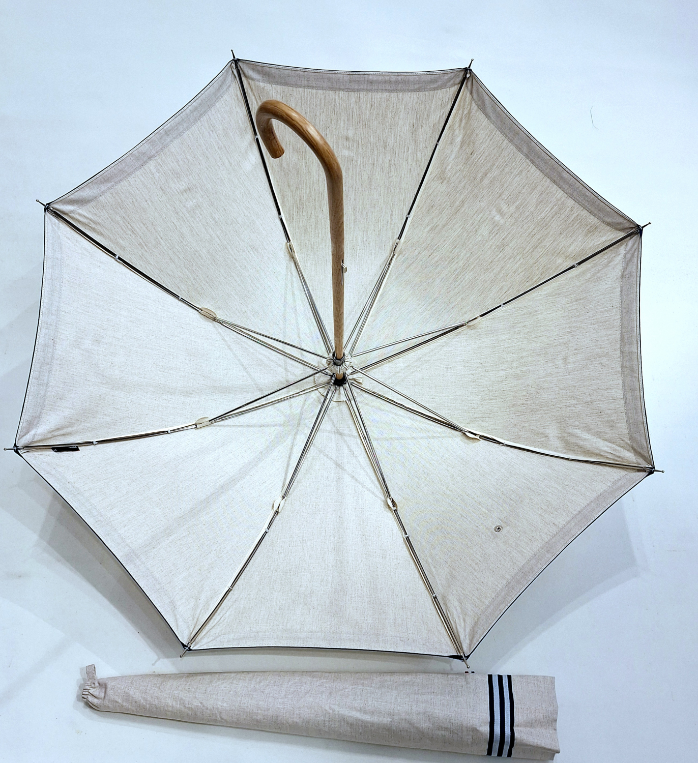 Ombrelle ANTI UV Française Fait Main en bois de Chêne et Lin Naturel.
