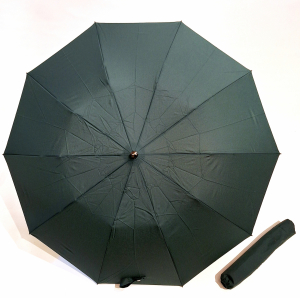 Parapluie d'homme pliant vert automatique 10 branches poignée bois P.Vaux - Grand & robuste