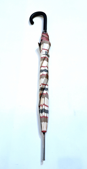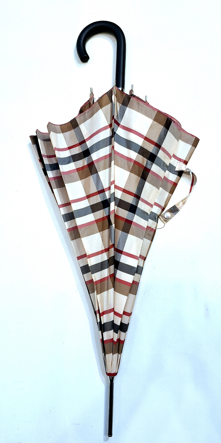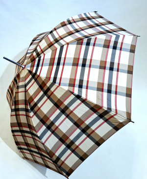Parapluie long automatique beige & marron imprimé ecossais "Burberry's" Doppler - Grand & solide