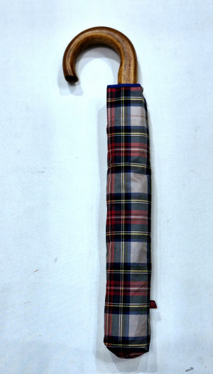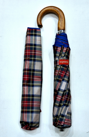 EXCLUSIVITE parapluie pliant automatique beige & rouge écossais poignée bois 10 branches Ezpeleta - grand & ne se retourne pas