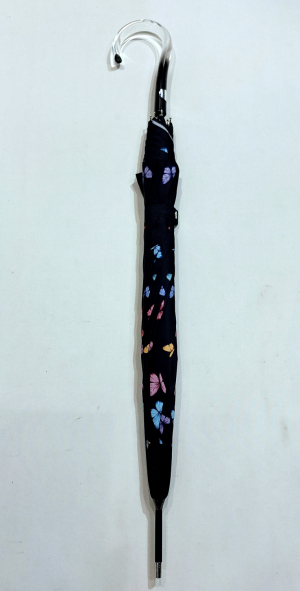 Parapluie long auto noir imprimé papillons colorés français - Qualité fait main - grand & résistant