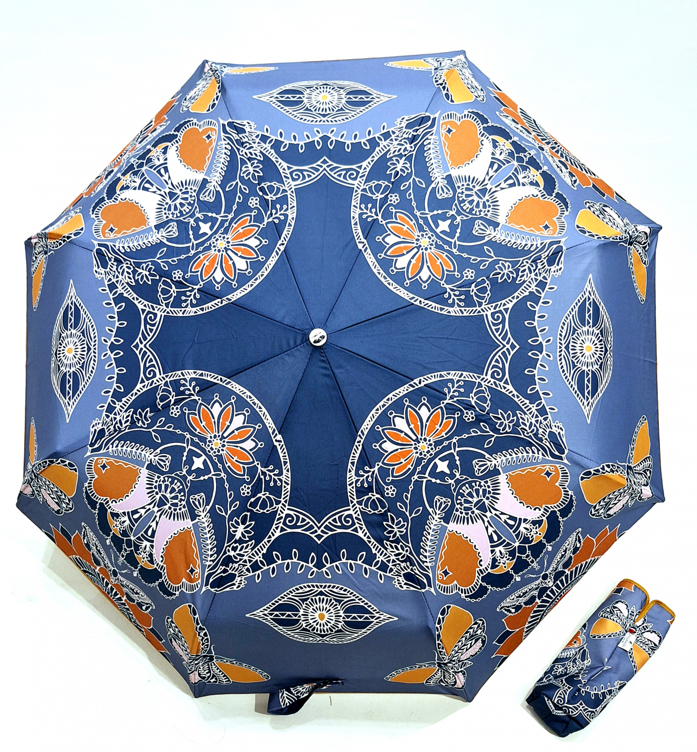 Parapluie mini français automatique ouvrant fermant bleu imprimé papillons Mandala Piganiol - Léger & résistant