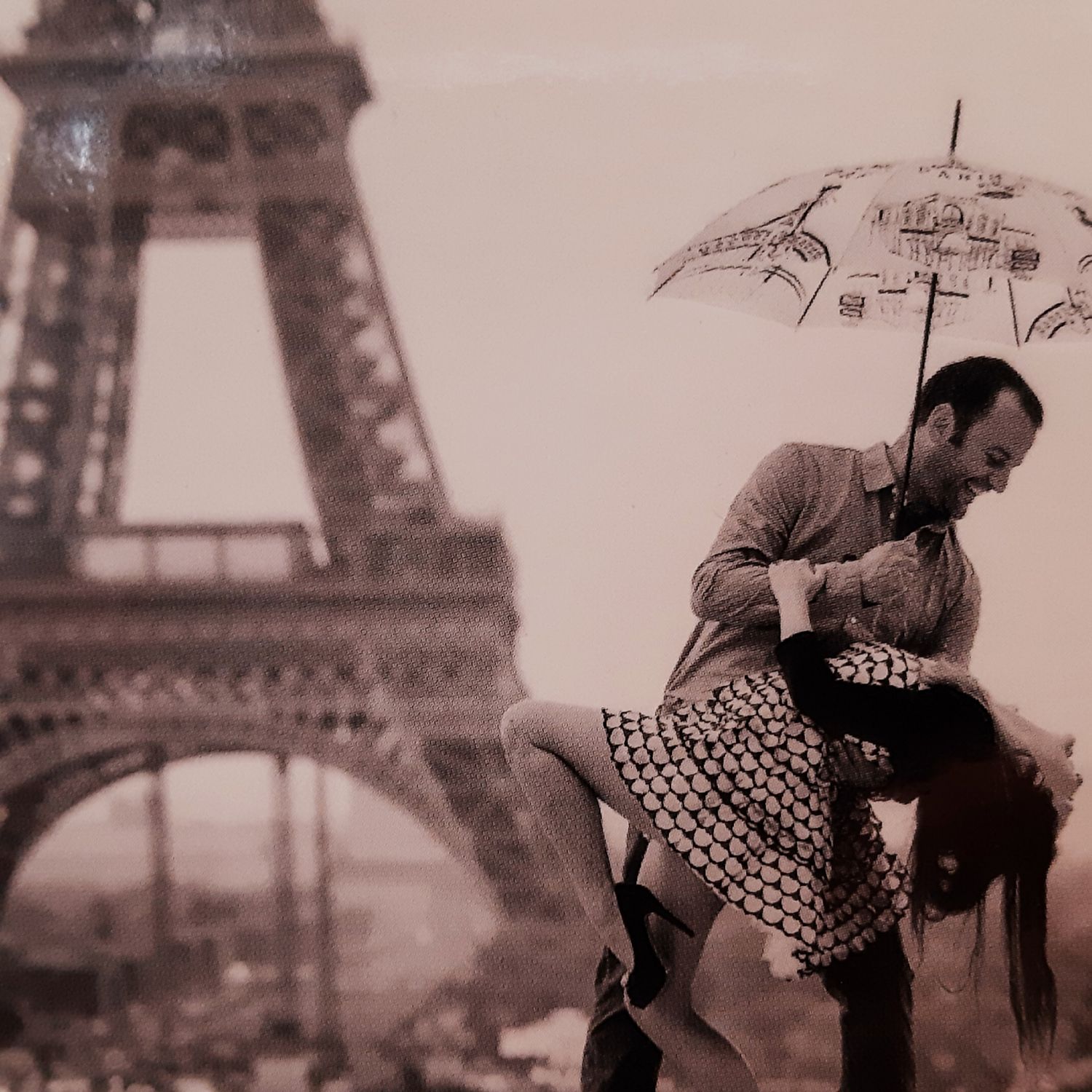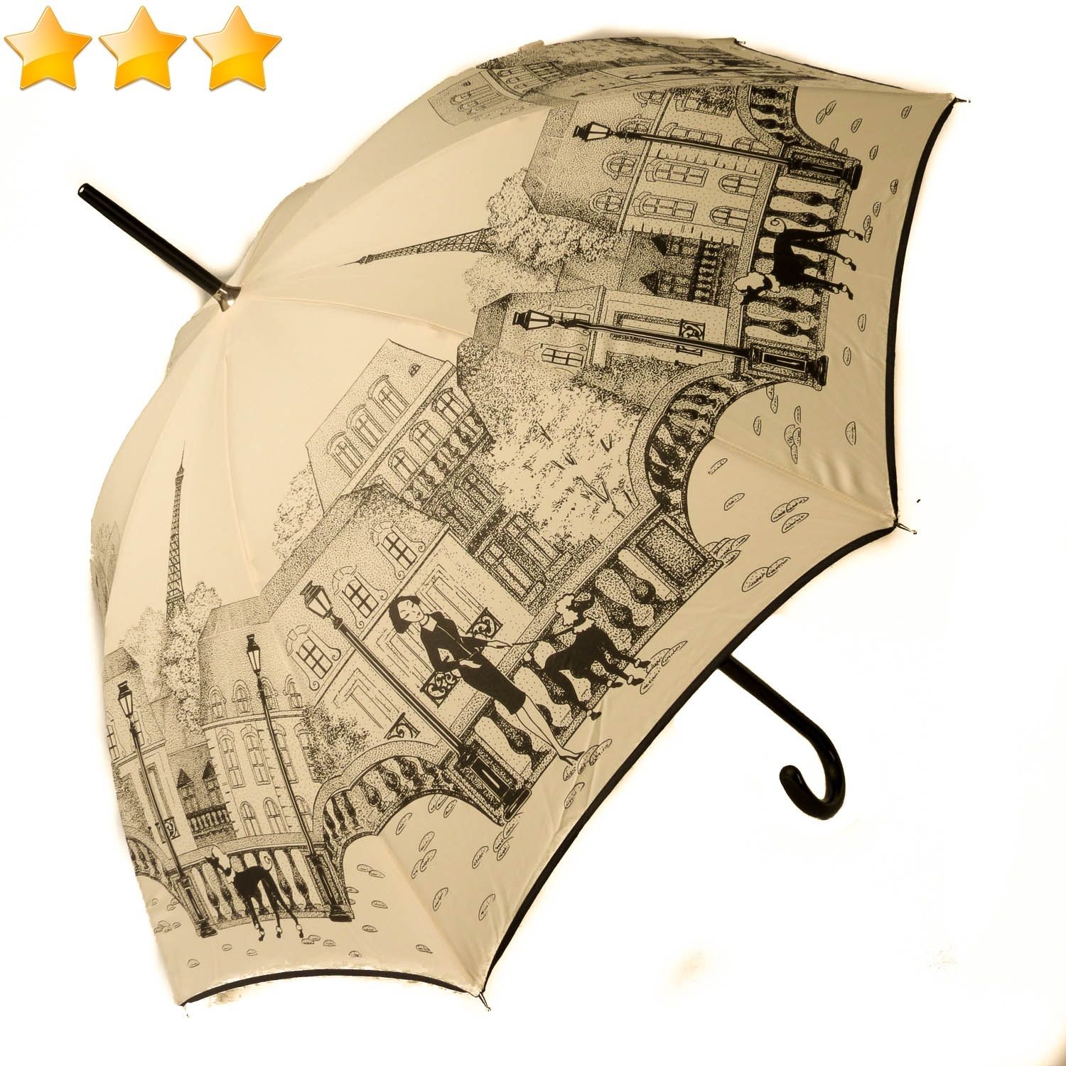 Parapluie long manuel impression la Parisienne ivoire Guy de Jean, léger et solide