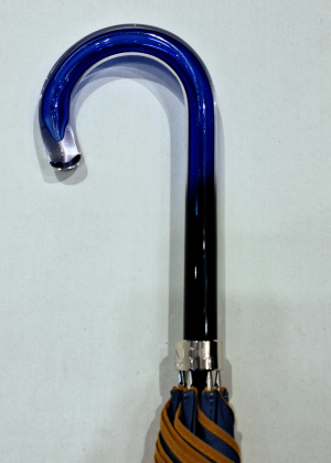 Ombrelle anti uv 100% droite en coton bleu marine manuelle sur un montage anglais en bois de chêne française