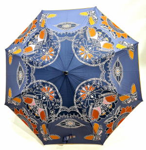 • Ombrelle anti uv 100% droite en coton bleu marine manuelle sur un montage anglais en bois de chêne française