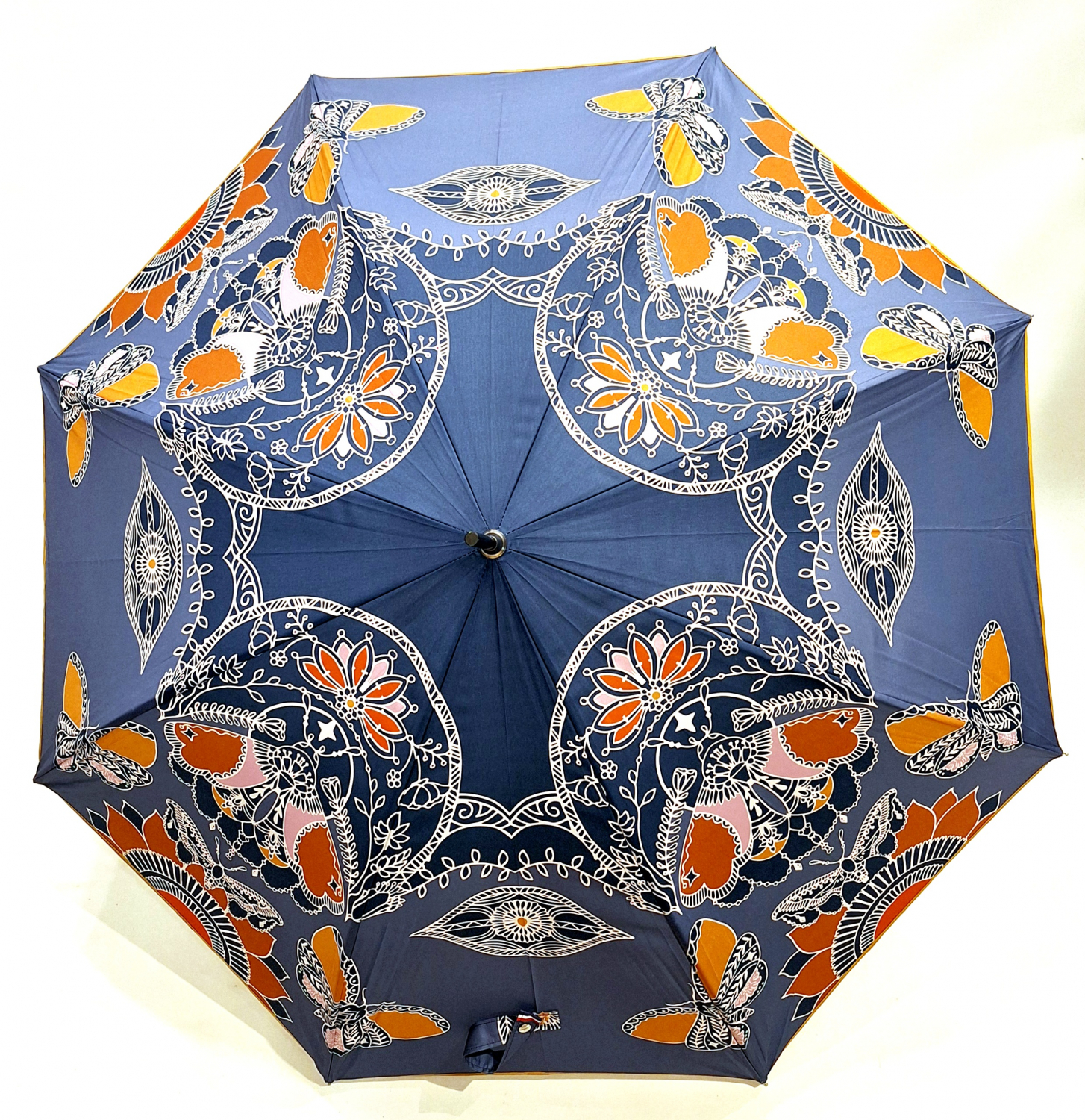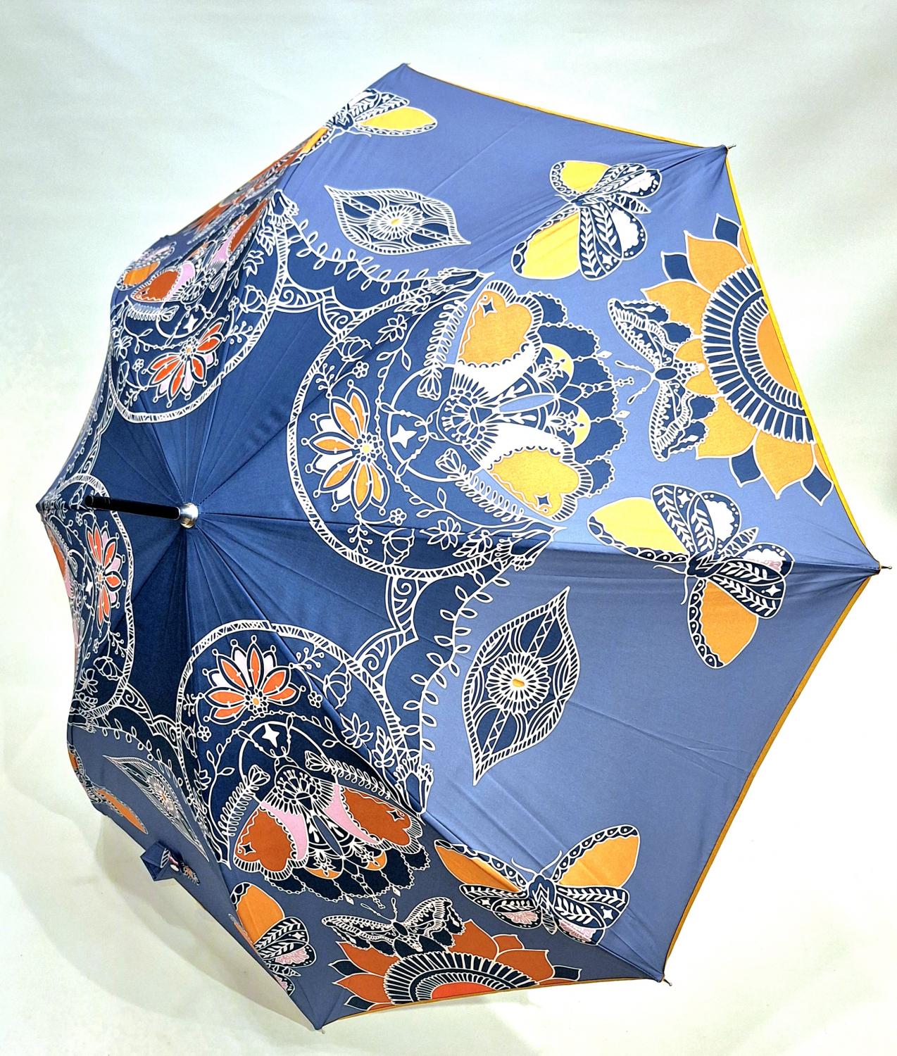 Parapluie long haut de gamme manuel mandala bleu et papillons - Français - Original & résistant
