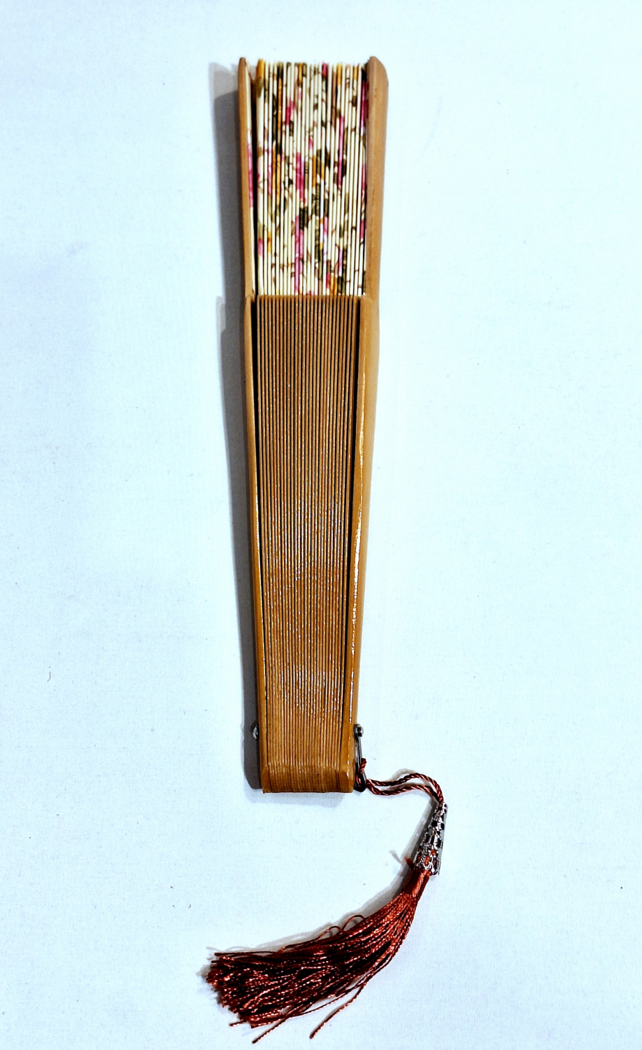 Grand éventail 27 cm - Roses & Orange tissu en coton imrimé fleurs bois naturel - 51 cm diam