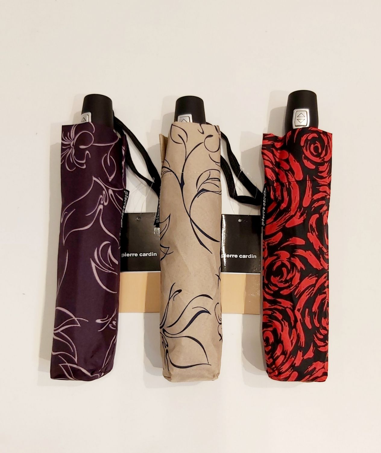 Mini parapluie extra fin pliant prune open close imprimé de fleurs P.Cardin - le Slim léger 250g & solide