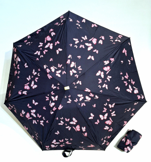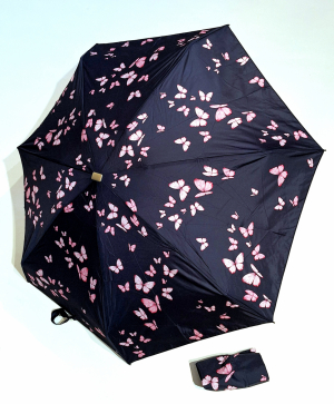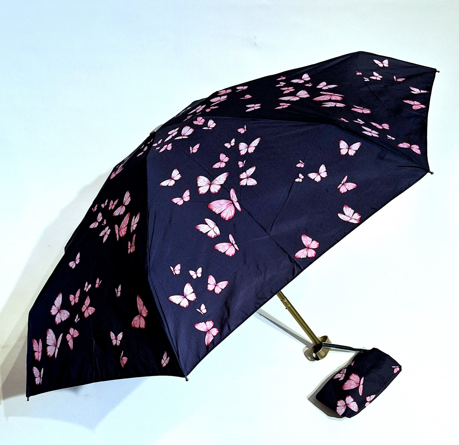 Parapluie de poche micro plat papillon rose Vaux français - Petit 16cm - Léger manuel & 7 brches résistant - Top qualité