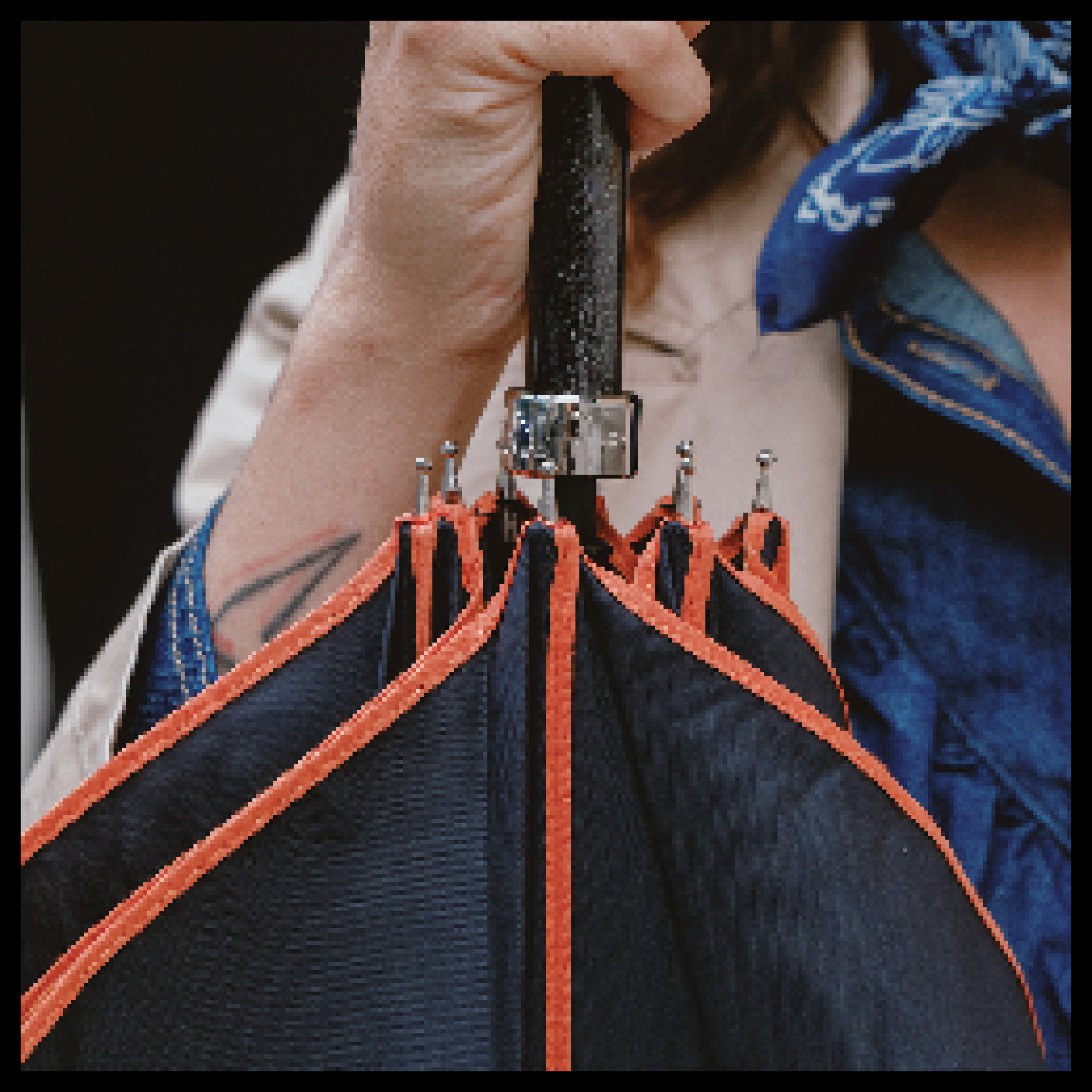 L'ensemble du parapluie est bordé d'un galon ocre.