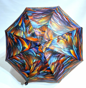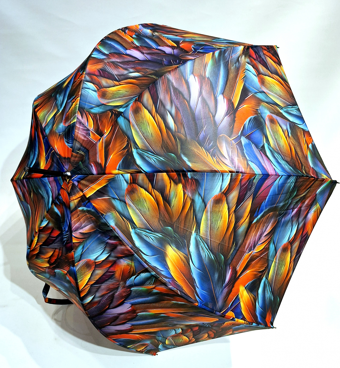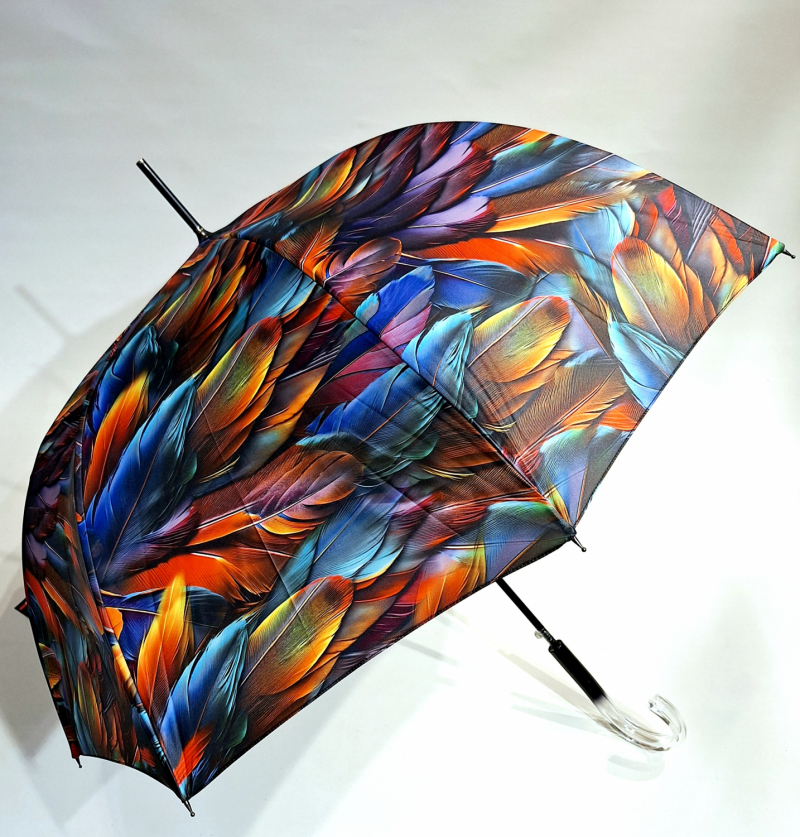 Parapluie grand forme cloche automatique imprimé plumes multicolore Neyrat - léger & résistant