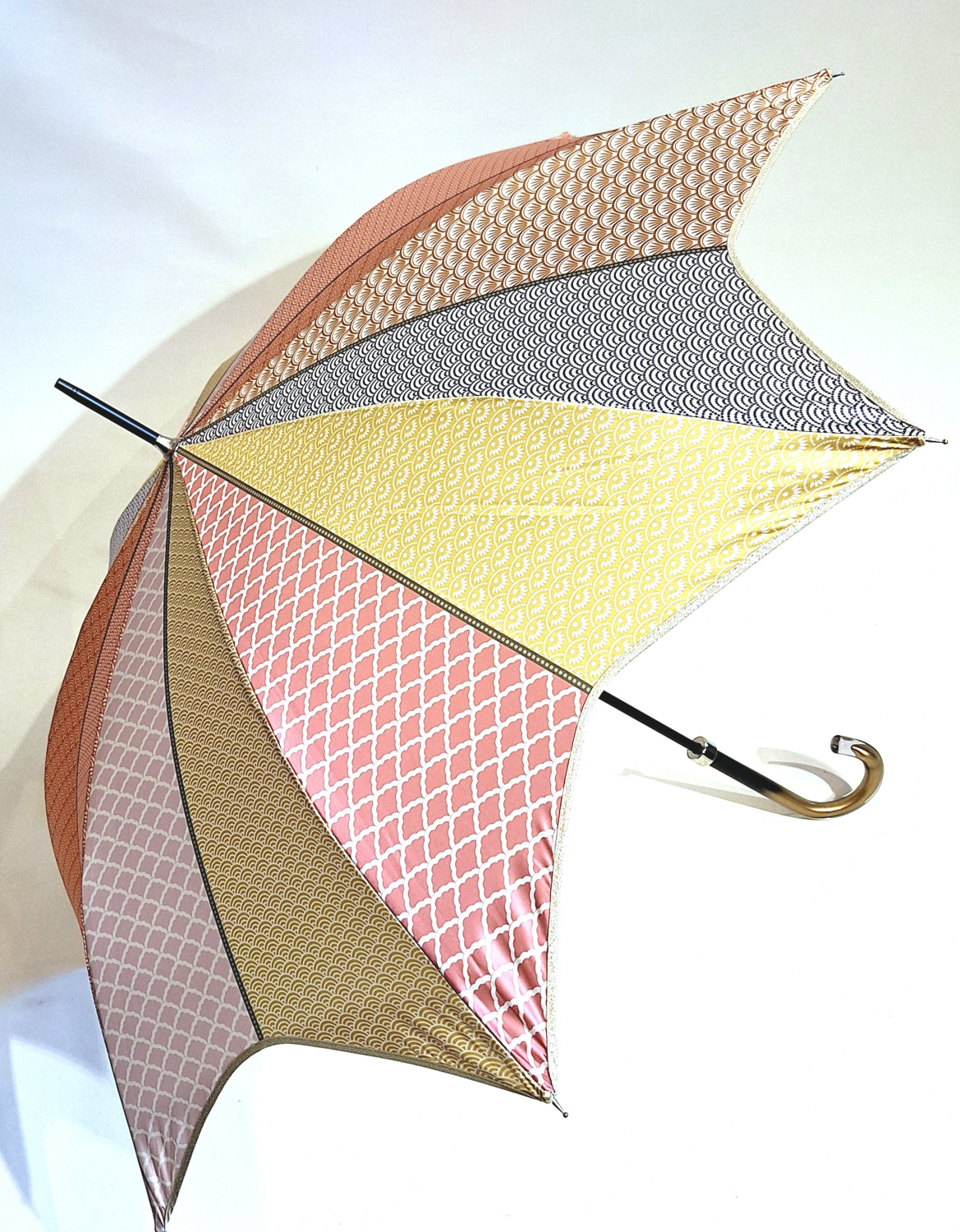 Parapluie inversé anti uv à 100% noir doublé jaune uni français par Neyrat Autun, léger et solide