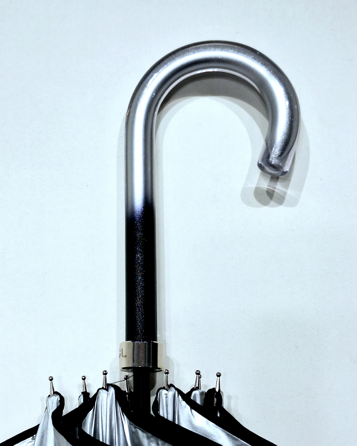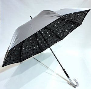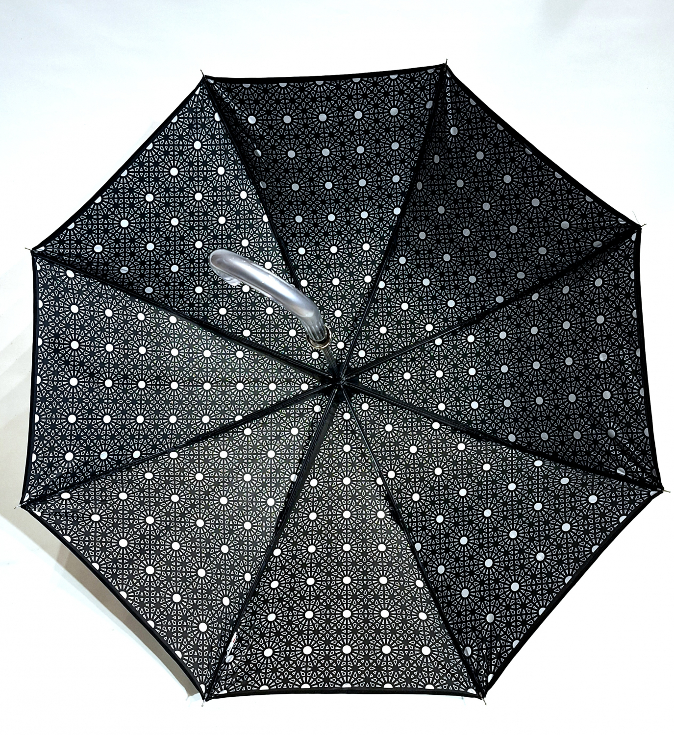 Détails Parapluie doublé pliant automatique noir doublé blanc bord étoile anti uv 100% Guy de Jean - robuste & anti vent