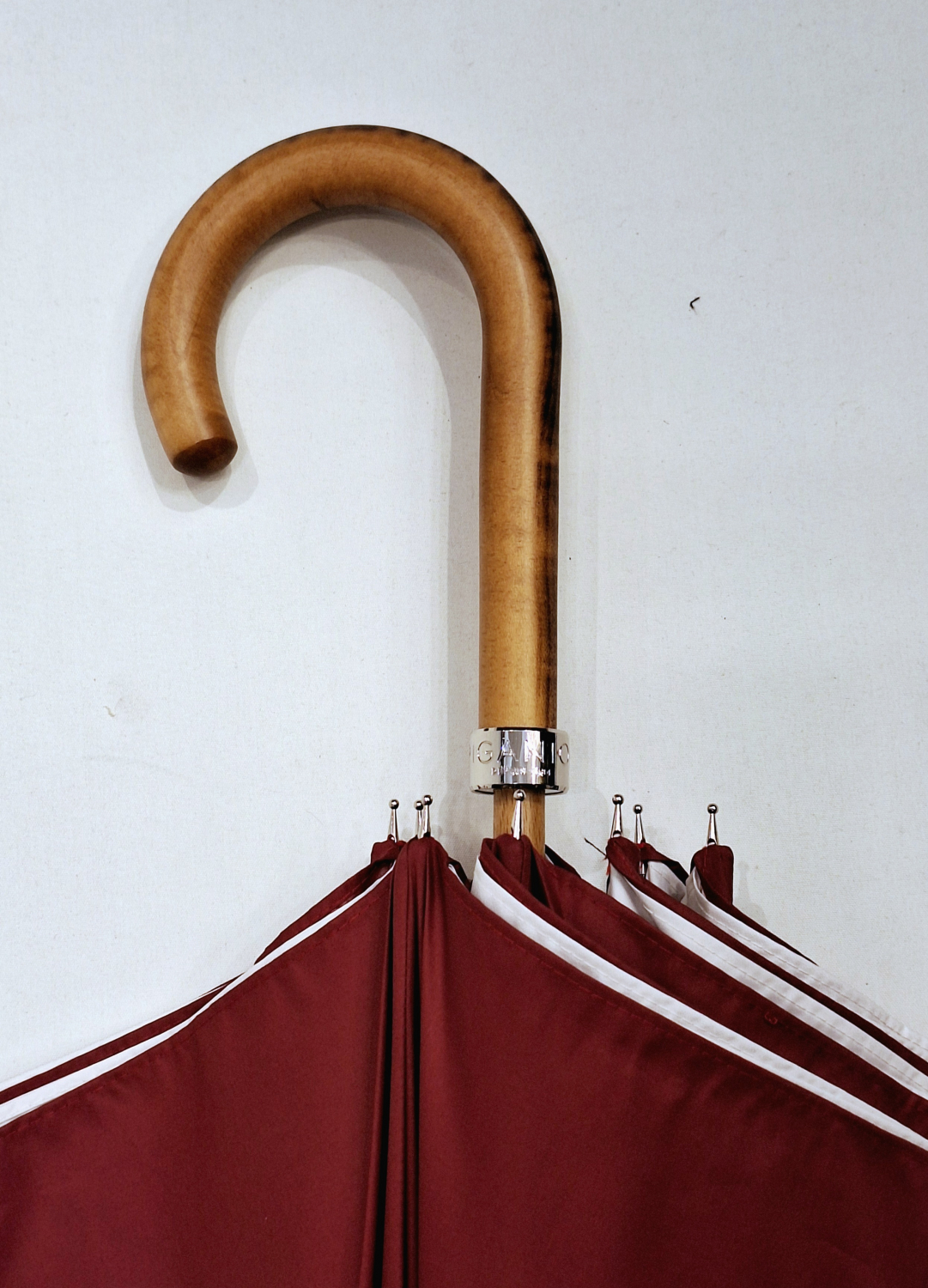 Un parapluie long en bois de hêtre léger, solide et d'un grand diamètre. Deux tissus épais pour des pluies intenses et un atout supplémentaire, une protection anti UV à 100%.