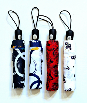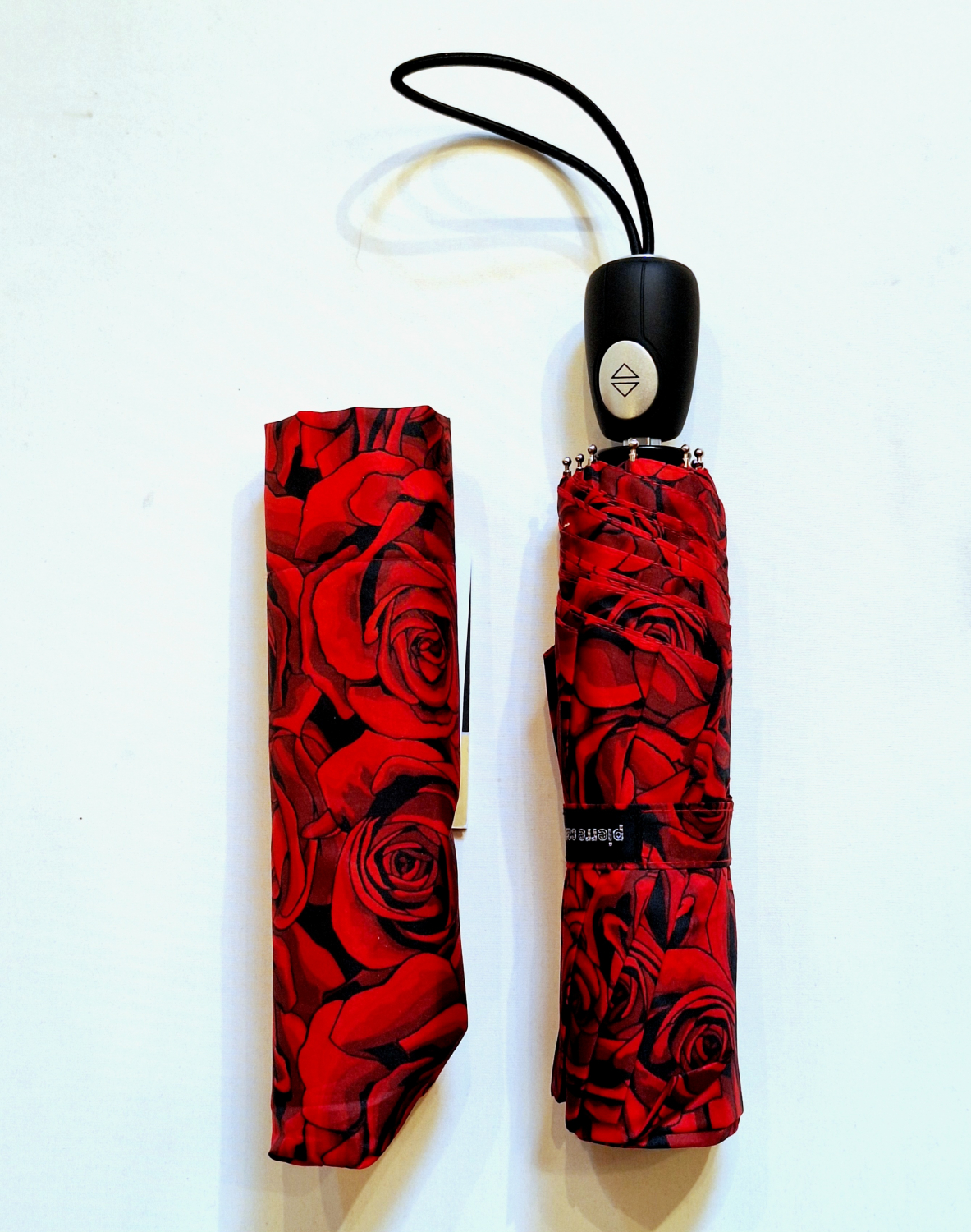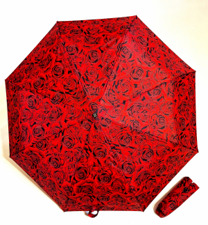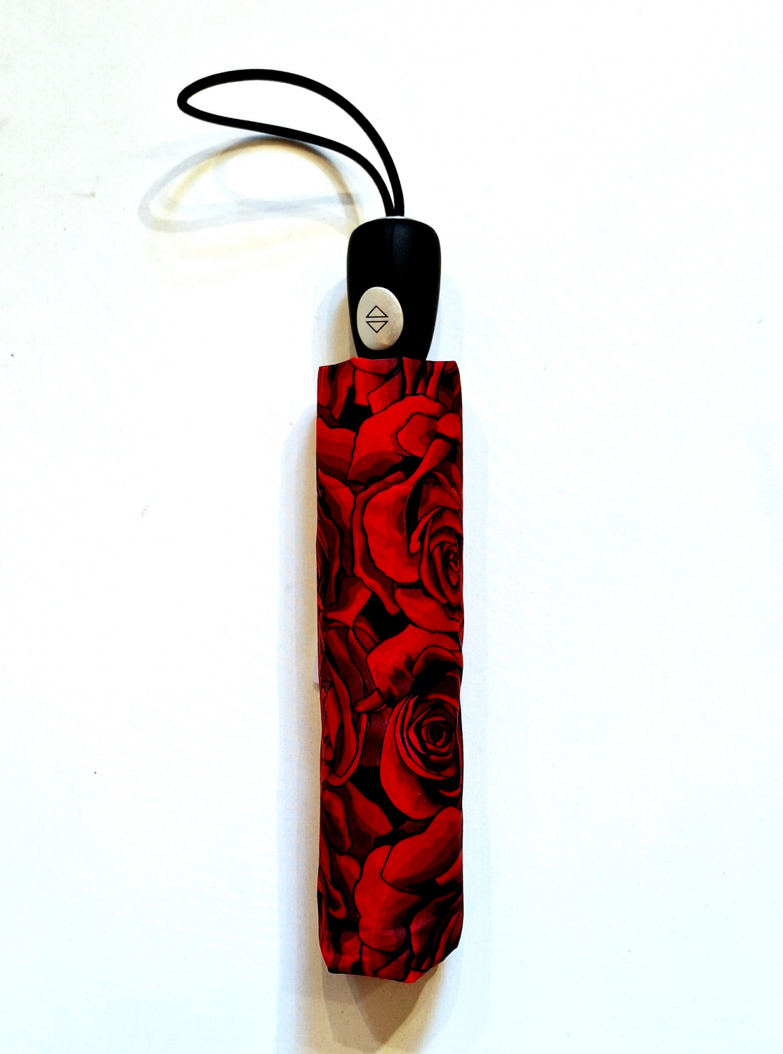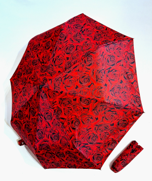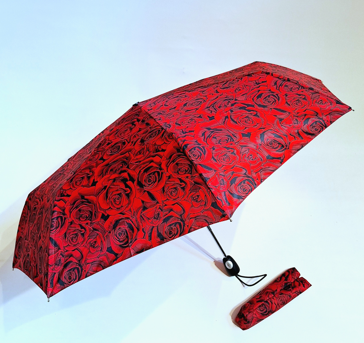 Parapluie pliant mini automatique rouge imprimé de roses - solide & pas cher