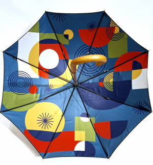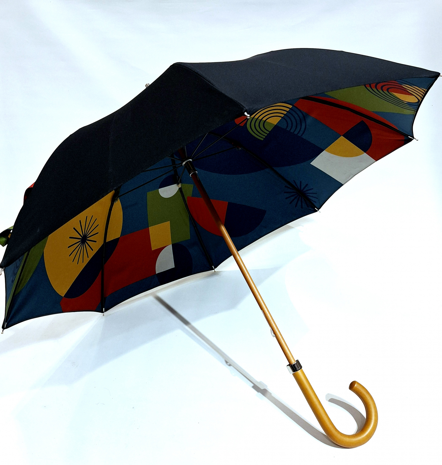 Grand parapluie doubltoile noir imprimé bleu graphine 70 manuel pgn bois - robuste & français