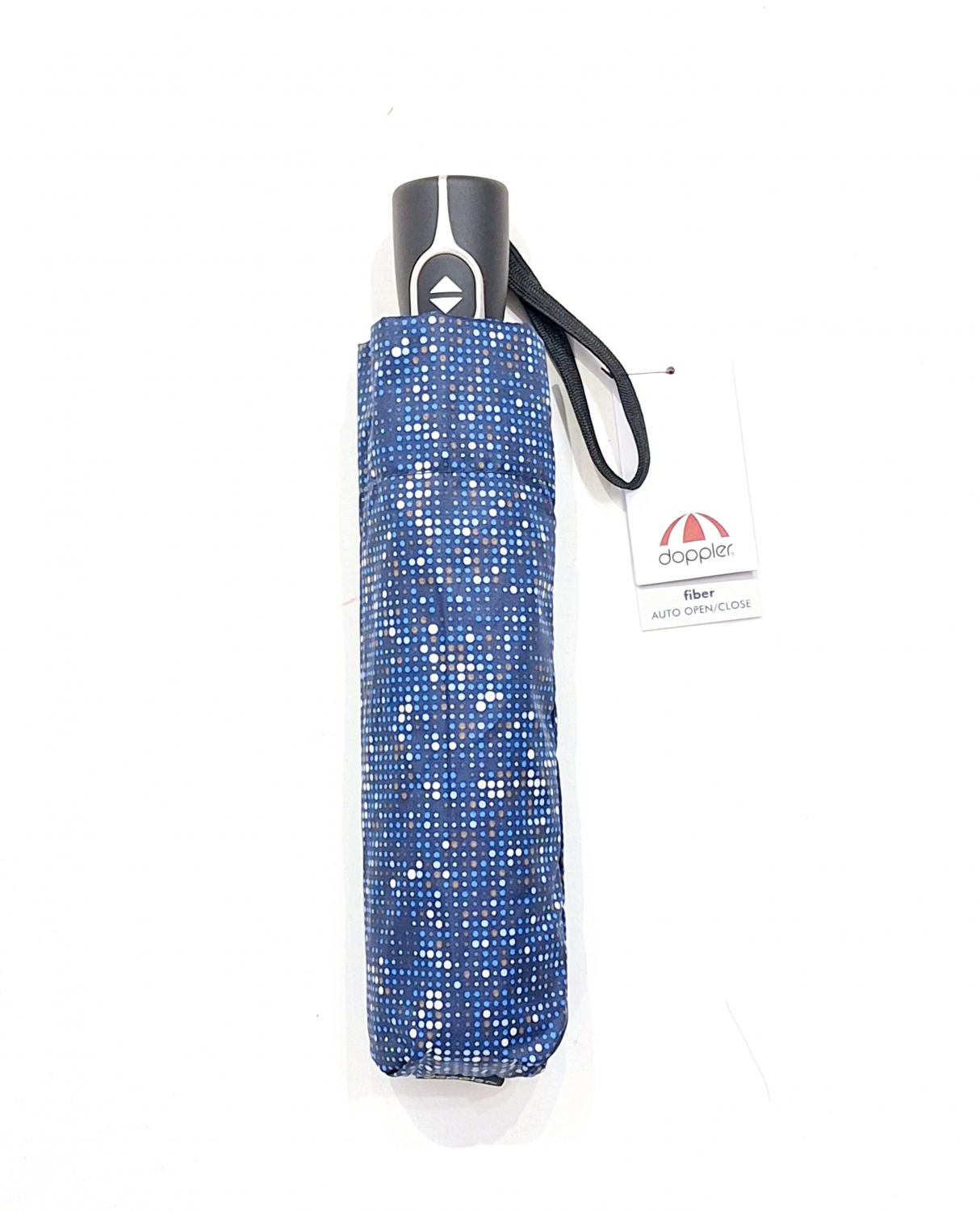 Mini parapluie pliable automatique ouvré fermé bleu imprimé graphique Doppler - Grand & solide