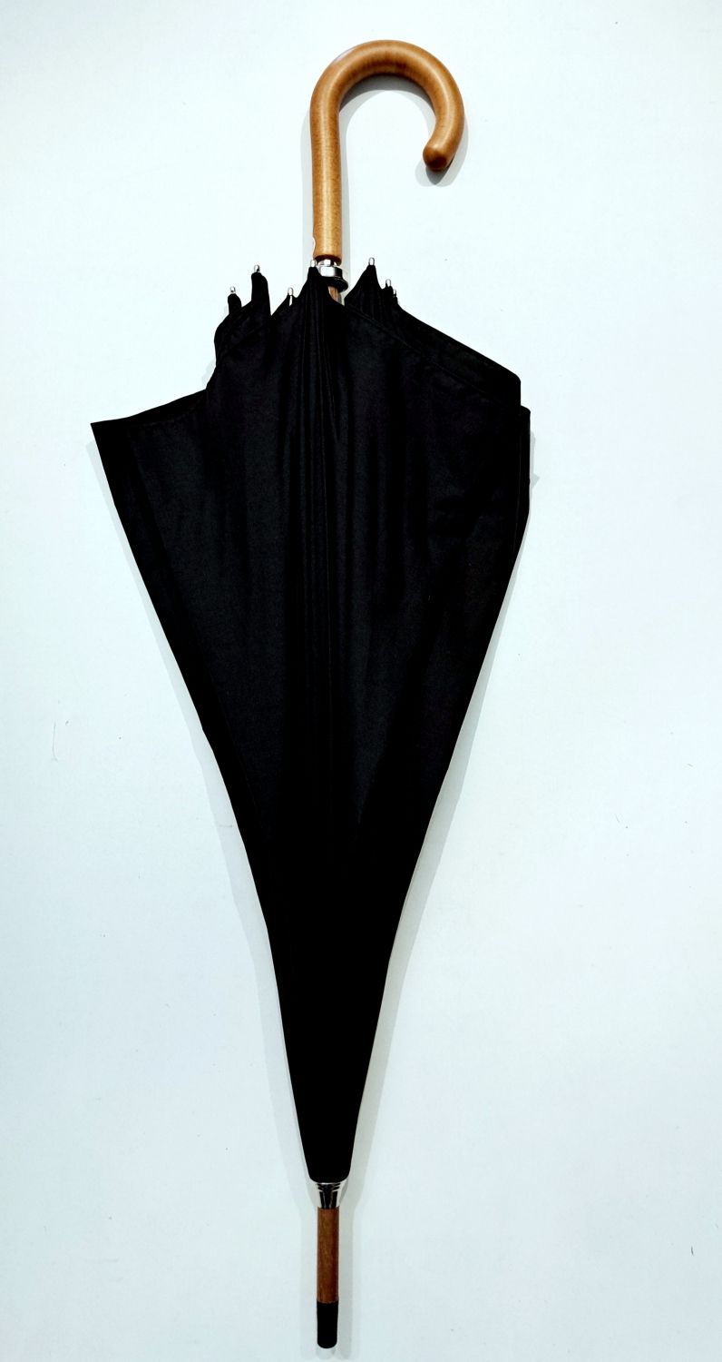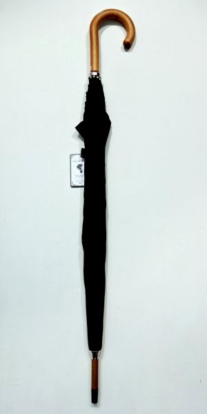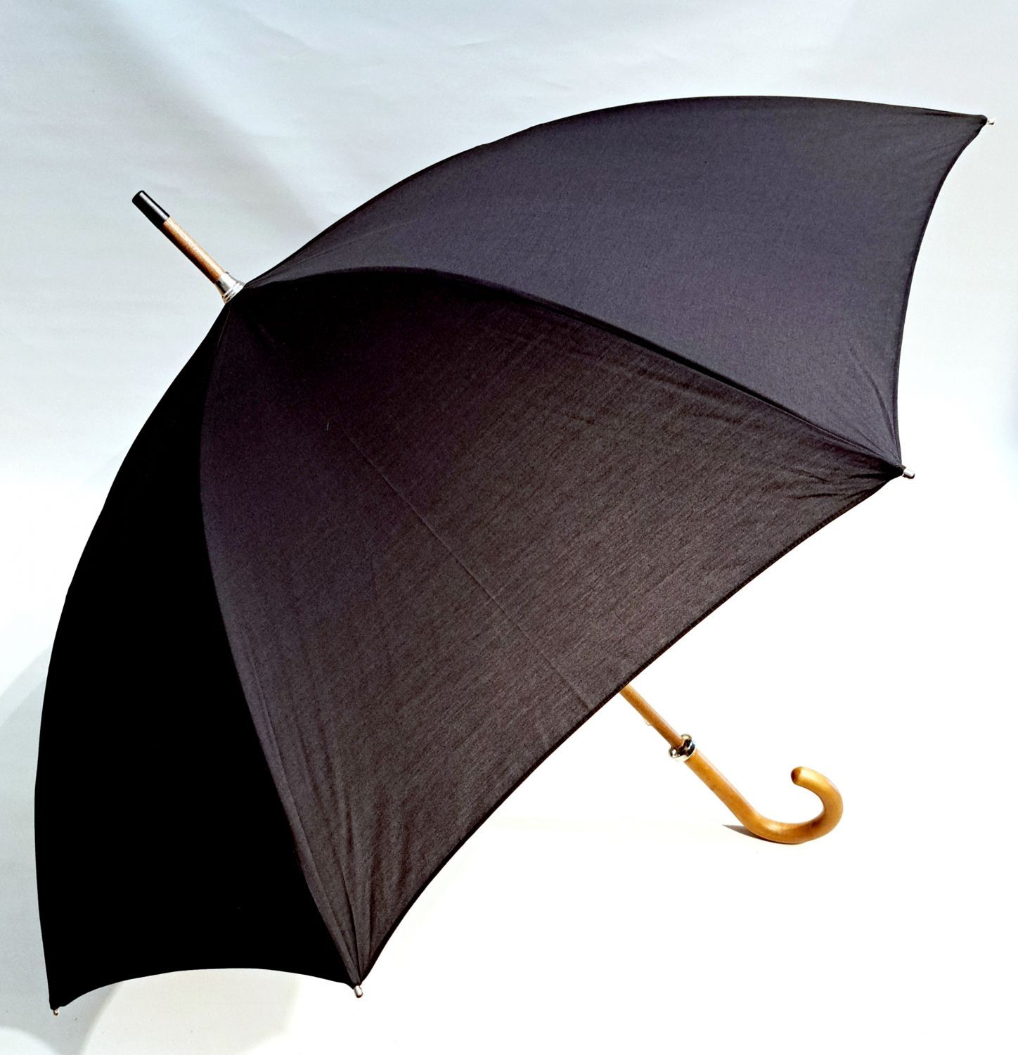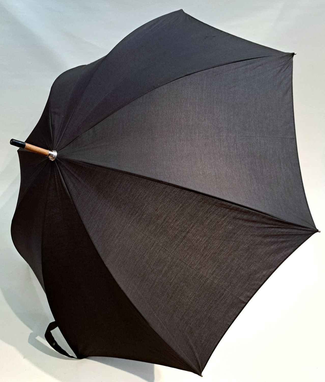 Parapluie Berger grand manuel uni coton noir poignée bois hêtre français - Large 115 diam & élégant