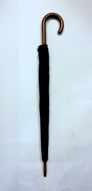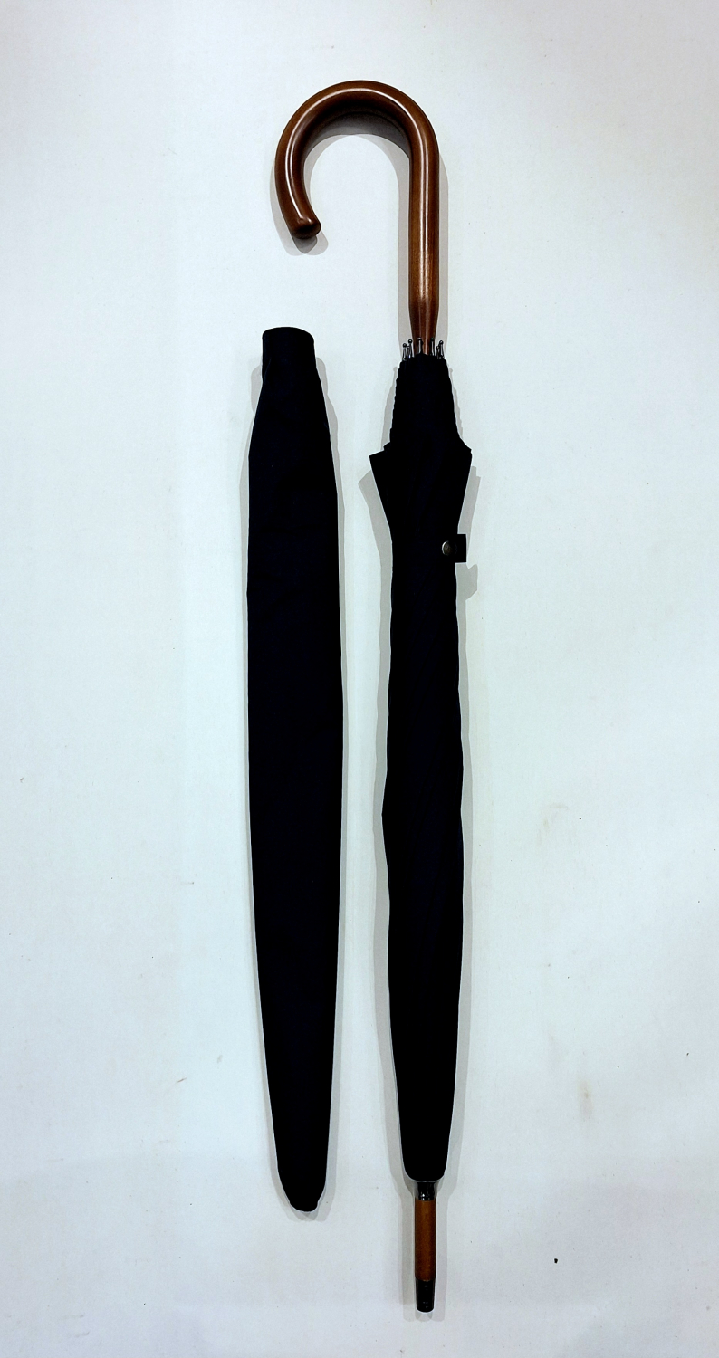 Parapluie bleu marine long en bois & sa poignée courbe bois Guy de Jean, grand et résistant