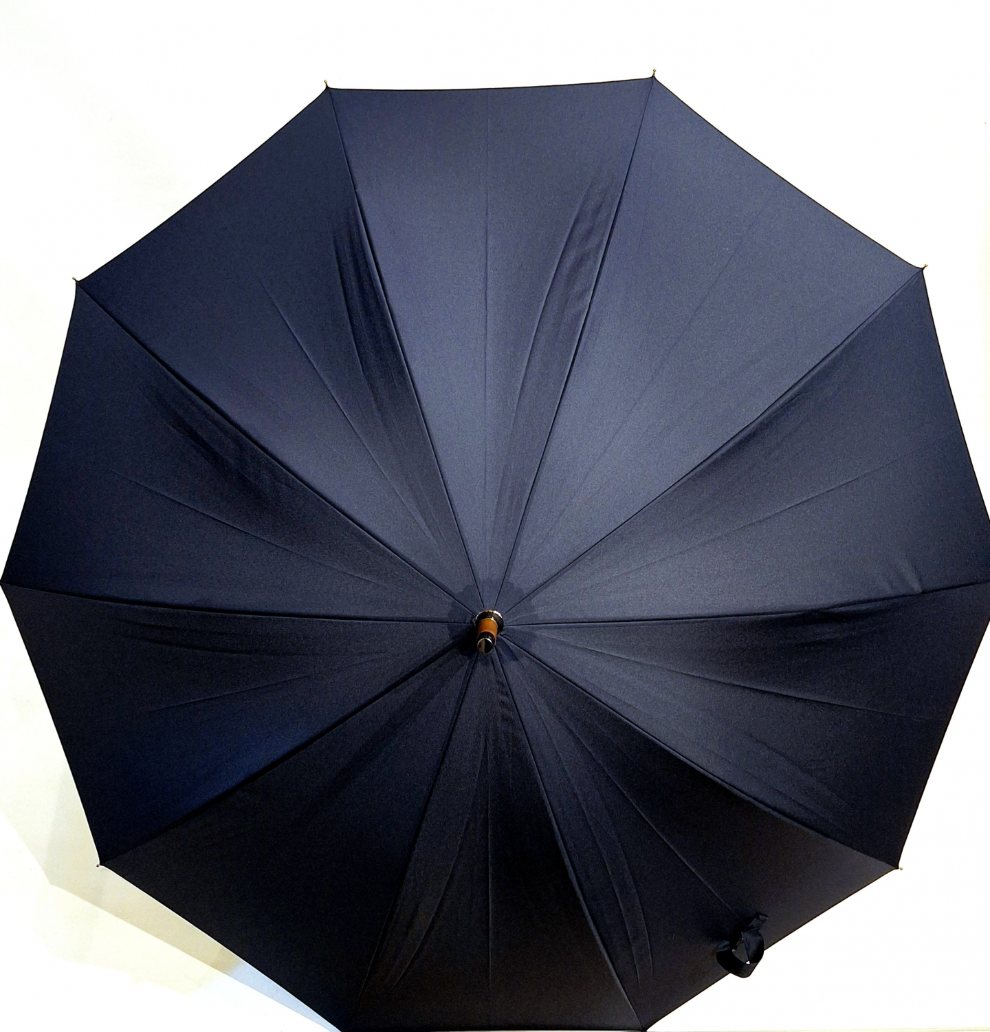 Parapluie canne d'une seule pièce en hêtre teinté uni bleu marine10 branches - résistant & français