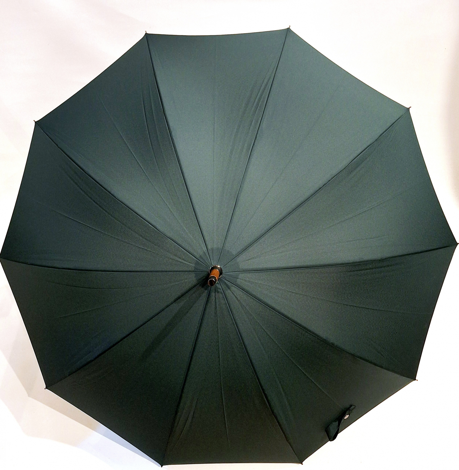 Parapluie de marche ANGLAIS uni vert Forest manuel - Bois hêtre - Grand 10 branches - Elégant & français