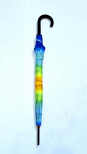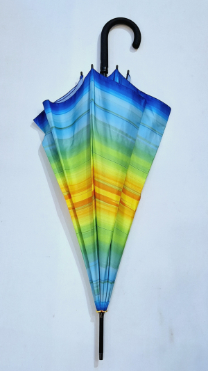 Parapluie long automatique coloré vert jaune imprimé rayé Doppler- Grand & solide