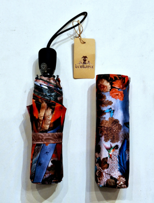 Détails Mini parapluie Anatole pliant plat de poche bicolore Kaki & Noir Alma, léger 220g & solide