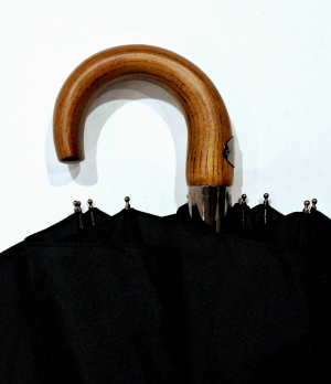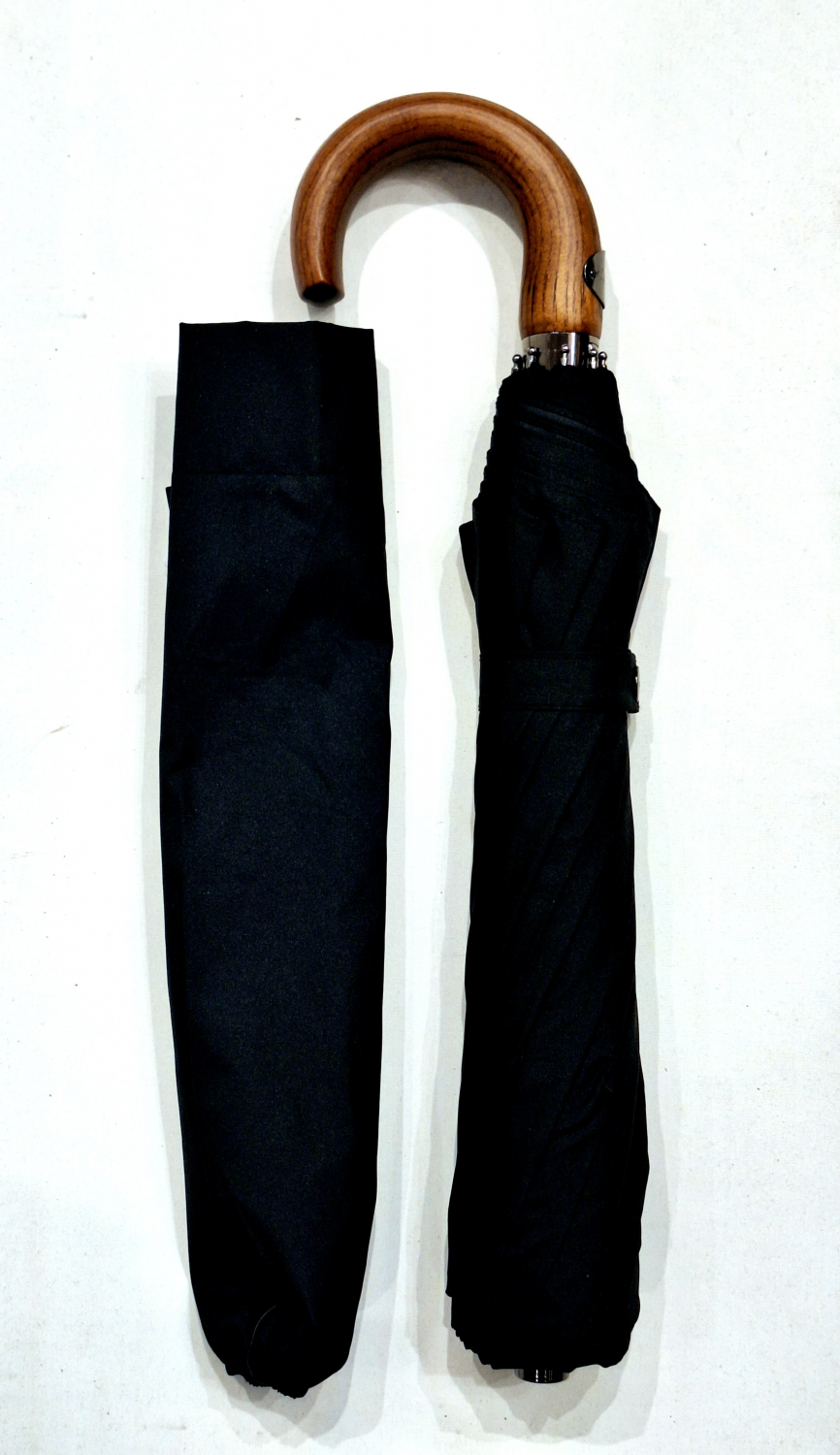 Parapluie pliant noir automatique 10 baleines poignée bois P.Vaux - solide & français
