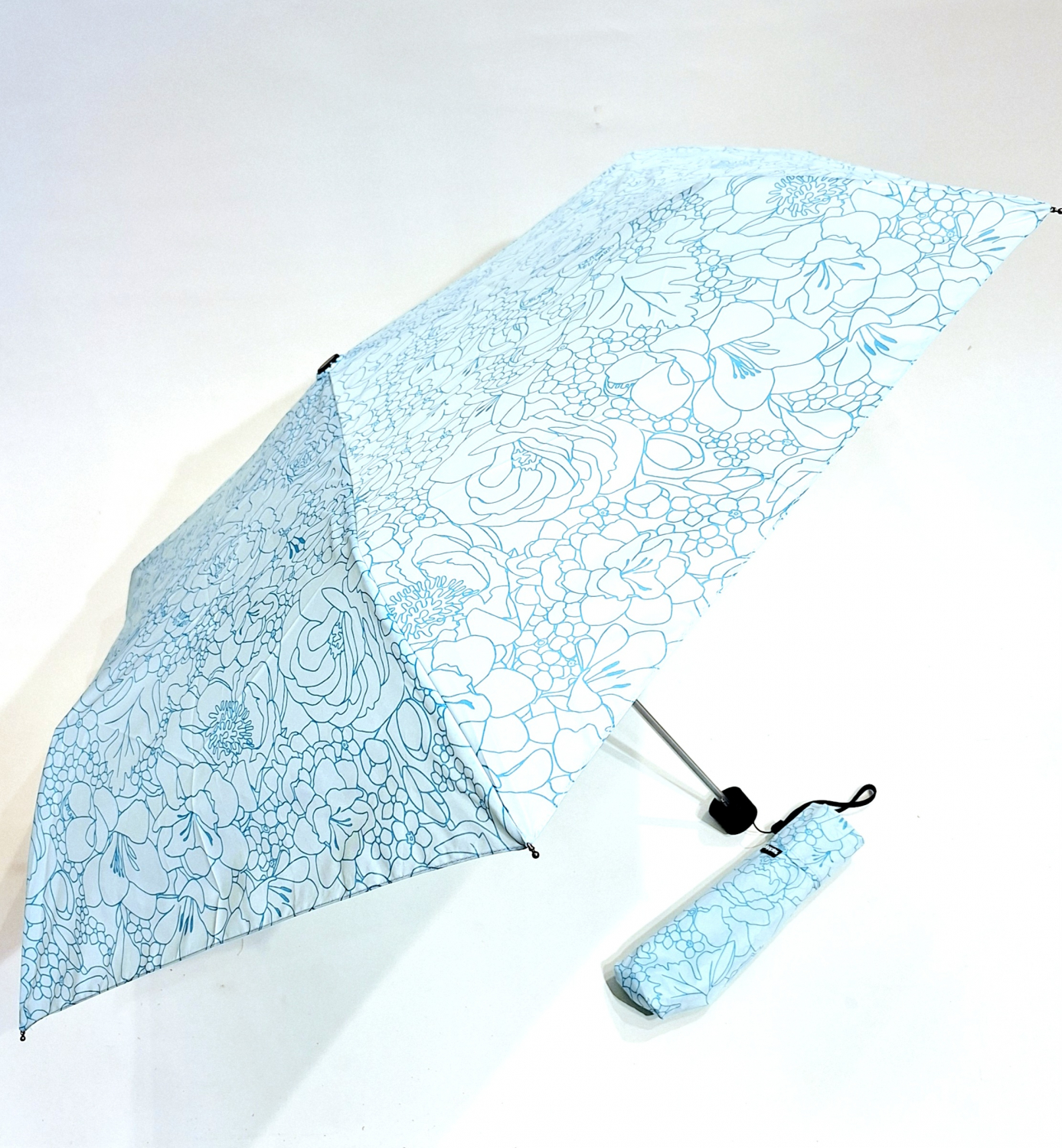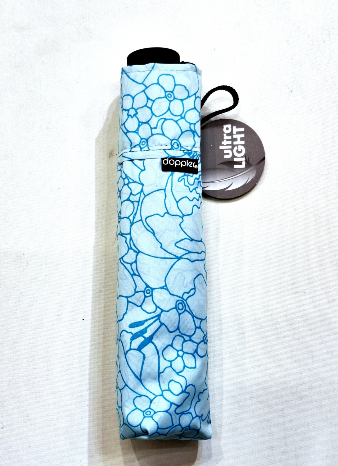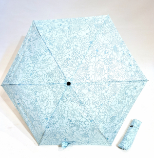 Parapluie Doppler PLUME mini Fiber Havanna imprimé fleurs bleu - Ultra léger env 100g & Pas cher