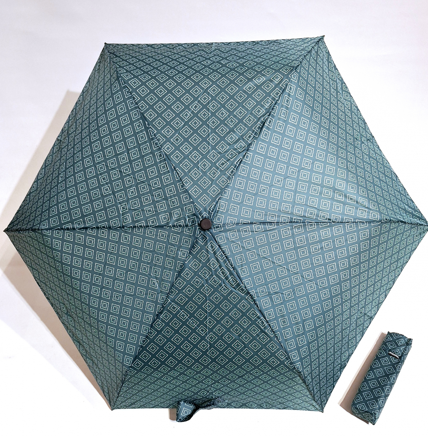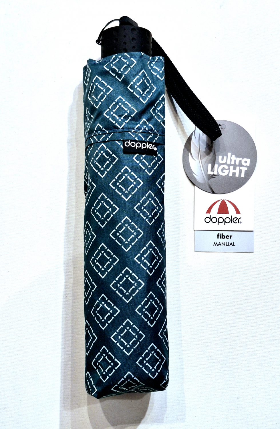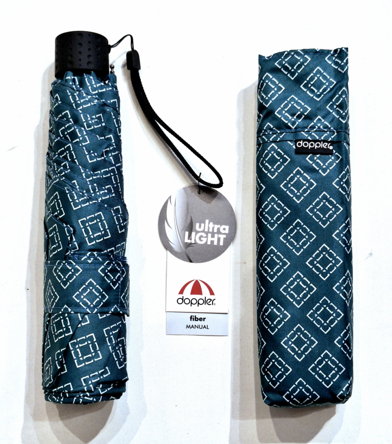 Parapluie Doppler PLUME pliant Fiber Havanna gris bleu imprimé de losange - Super léger 140g & Elégant